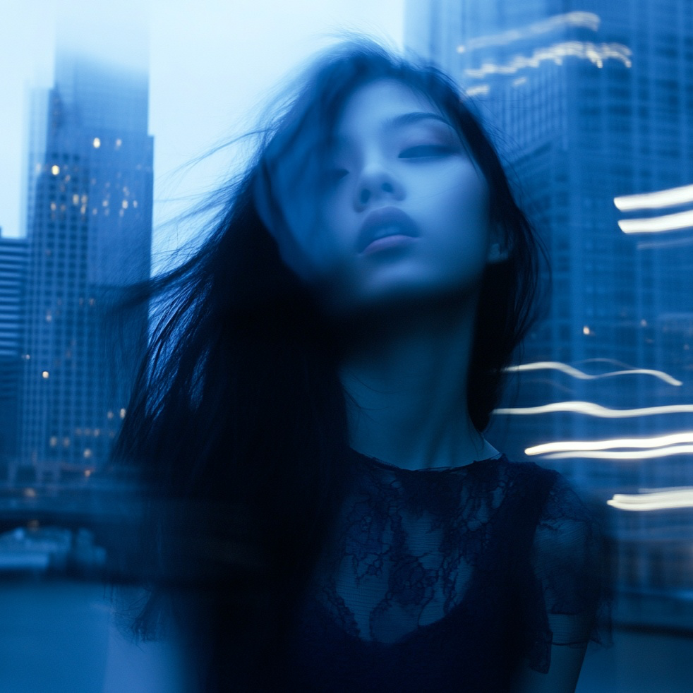 A slow, post-minimalist jazz rock fusion at 110 bpm features brushed drums, fortepiano, and smooth percussion, woven with Balkan brass, noirish 30s jazz, taiko, koto, didgeridoo with parallel distortion, and noise FX, Deep hoarse female vocals channel enka and Kayokyoku, Reverb guitars and melodic mbube harmonies blend with factory sounds, smoky funk bass, and psychedelic, avant-garde voicings, all swirling in rich, progressive layers