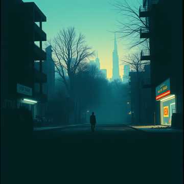 Industrial Rock, Darkwave, mid-tempo, heavy electronic drums, dark droning bass, melancholic synth pads, distant guitar textures, male vocals, German lyrics, mood: Rückblick auf die Stadt & das alte Leben, ambivalent (Anziehung und Abstoßung), verses eher ruhig und bildhaft, Chorus groß, sehnsüchtig und doch kalt, Instrumentalteil mit „Stadtklang“-Samples (Sirenen, entfernte Stimmen, Hall)