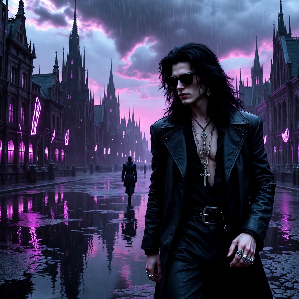 Gothic Metal, Gothic Rock, Decadent Atmosphere, Warm Deep Baritone Male Voice, Lust Clean Guitars Arpeggios, Electric Guitars, Flanger, Delay, Deep Reverb, Heavy Drums, [Mastering is Clean and Crisp]