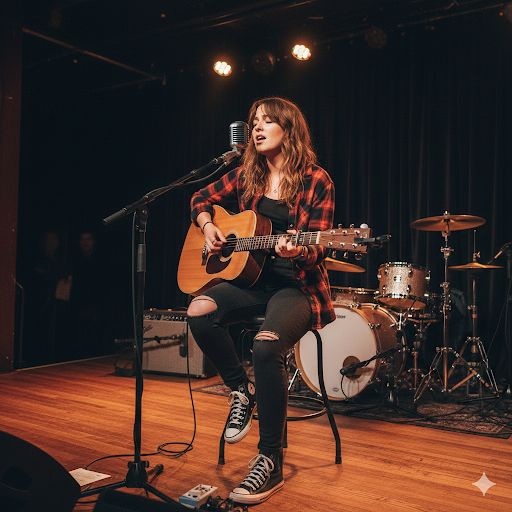 Acoustic Pop Punk, Unplugged, Female Vocals, Intricate Acoustic Guitar Fingerpicking, Mid-Tempo, Soft Cajon Percussion, Introspective, Emotional, Clean Vocal Harmonies, Singer-Songwriter, Coffee Shop Vibe, Melancholic