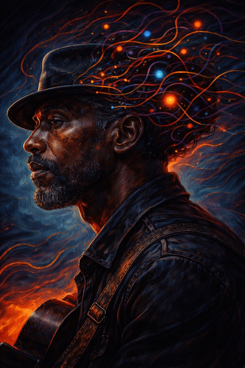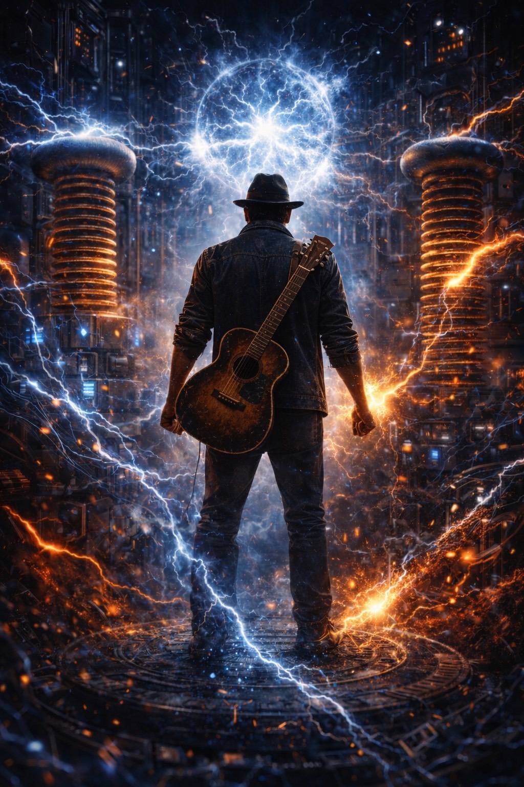 hip-hop, low, pulsing groove like controlled current, edgy guitar riff crackling with tension, not chaotic, blues, deep, dark blues-rap-rock with a deep hip-hop low end, electric, gritty, rock, male vocals, confident male vocals, not scientific—primal energy redirected into rhythm and resonance, let the music feel tuned, but refined into sound, cinematic, animal, refined, electric, blues lead guitar humming and bending like voltage, rhythm feels instinctual, rap