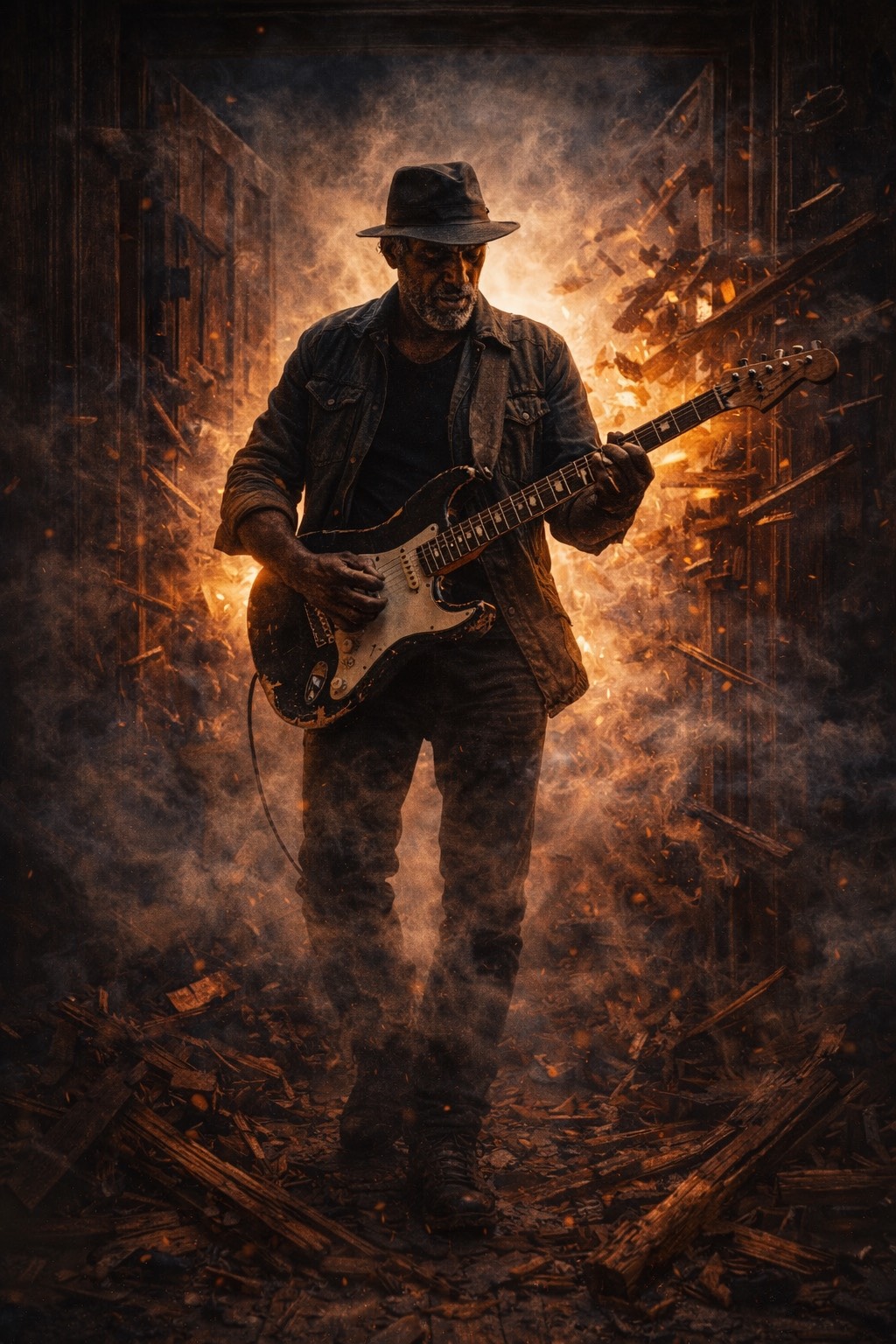 Confident Male Vocals, Rock, Low, Nocturnal, Cinematic, Restrained But Powerful, Locks Failing, Space Between Lines For The Beat To Hit, Rhythm Feels Like Forward Motion, Momentum Starting, Dark Blues-Rap-Rock With Heavy Hip-Hop Low End, Slow, Blues Lead Guitar Cries Above The Beat, Hip-Hop, Feels Like Doors Opening, Gritty, Rap, Controlled, Slow Dangerous Groove, Blues, Male Vocals, Edgy Distorted Guitar Riff For Tension