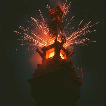 schranz, industrial textures; intense and mechanical, pounding beats with heavy basslines and dark, aggressive, evoking chaos and destruction, relentless