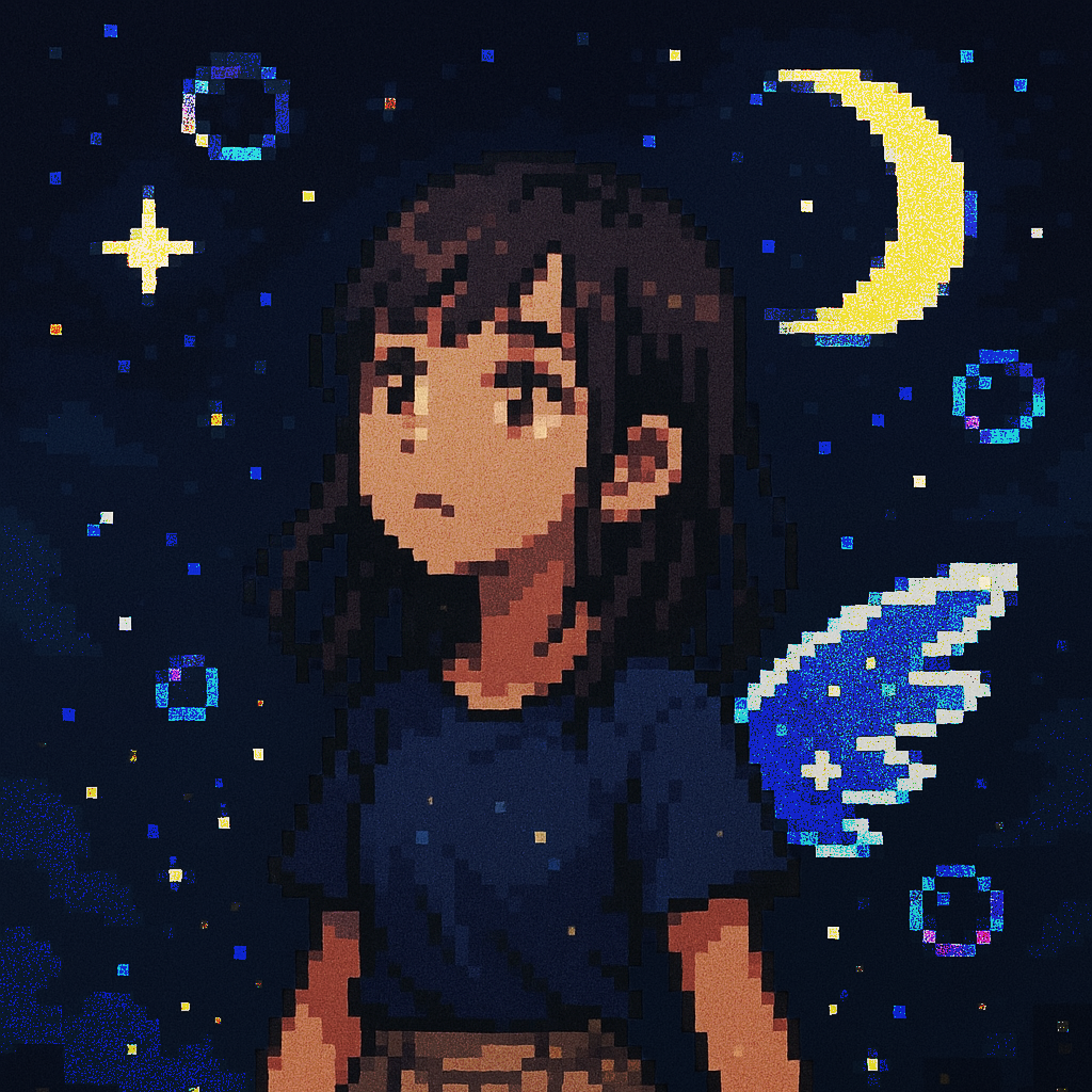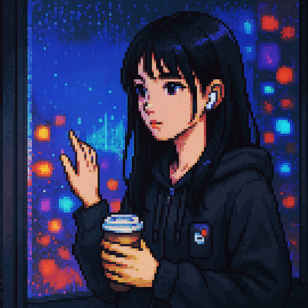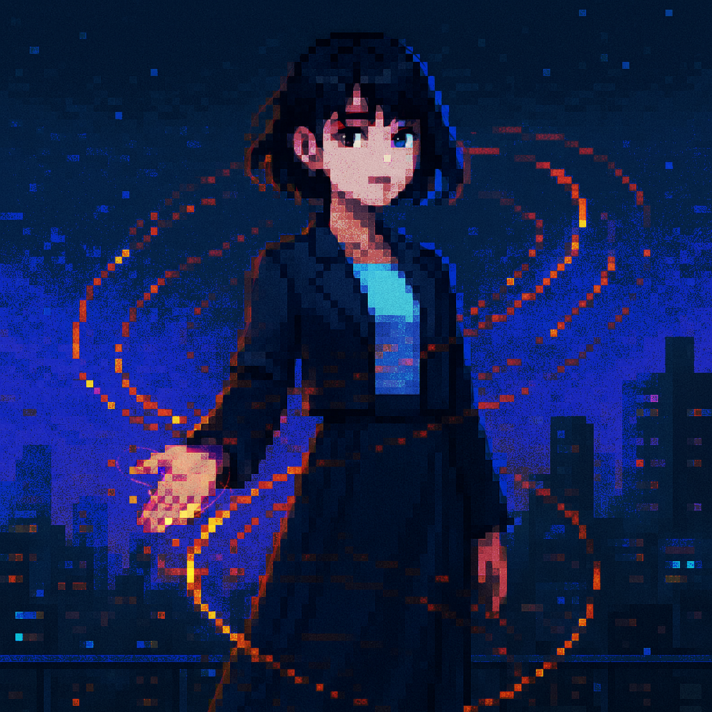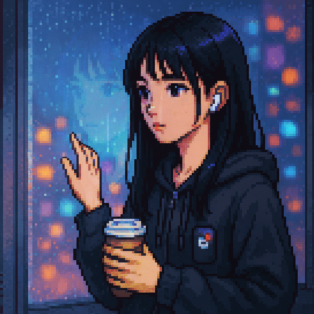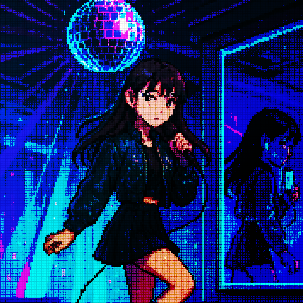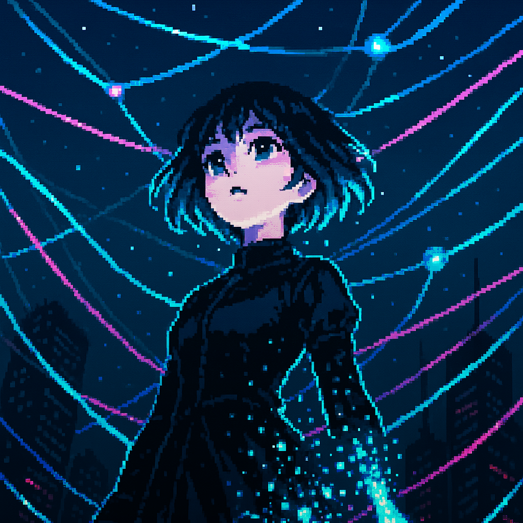 Style: Glossy Japanese kawaii Electro-Pop / Future Disco, 128 BPM, key F♯ min, Drums – four-on-floor kick, crisp snare, bright 16-hat, airy clap, Bass – rubbery syncopated synth bass, octave hops, side-chained, Synths – supersaw chords, glitter 16th arpeggio, FM pluck fills, Lead – pentatonic saw riff with slides; chopped *wordless* vocal shots, FX – reverse cymbal, vinyl down-lifter, bit-crush rise, wide noise, Form