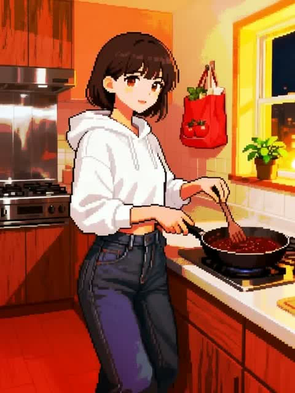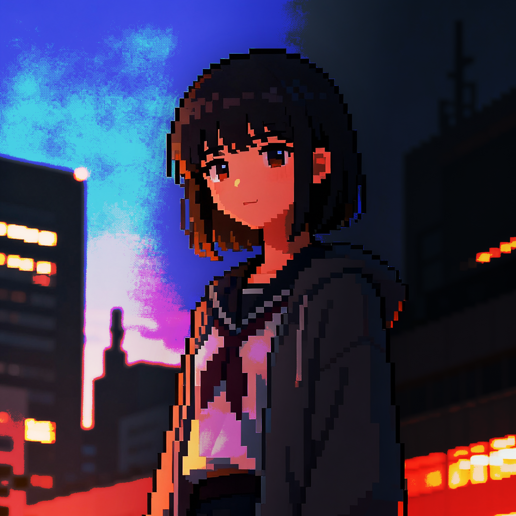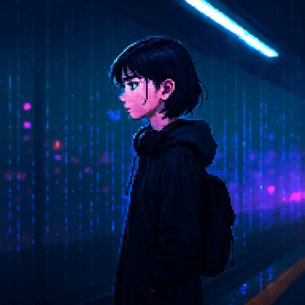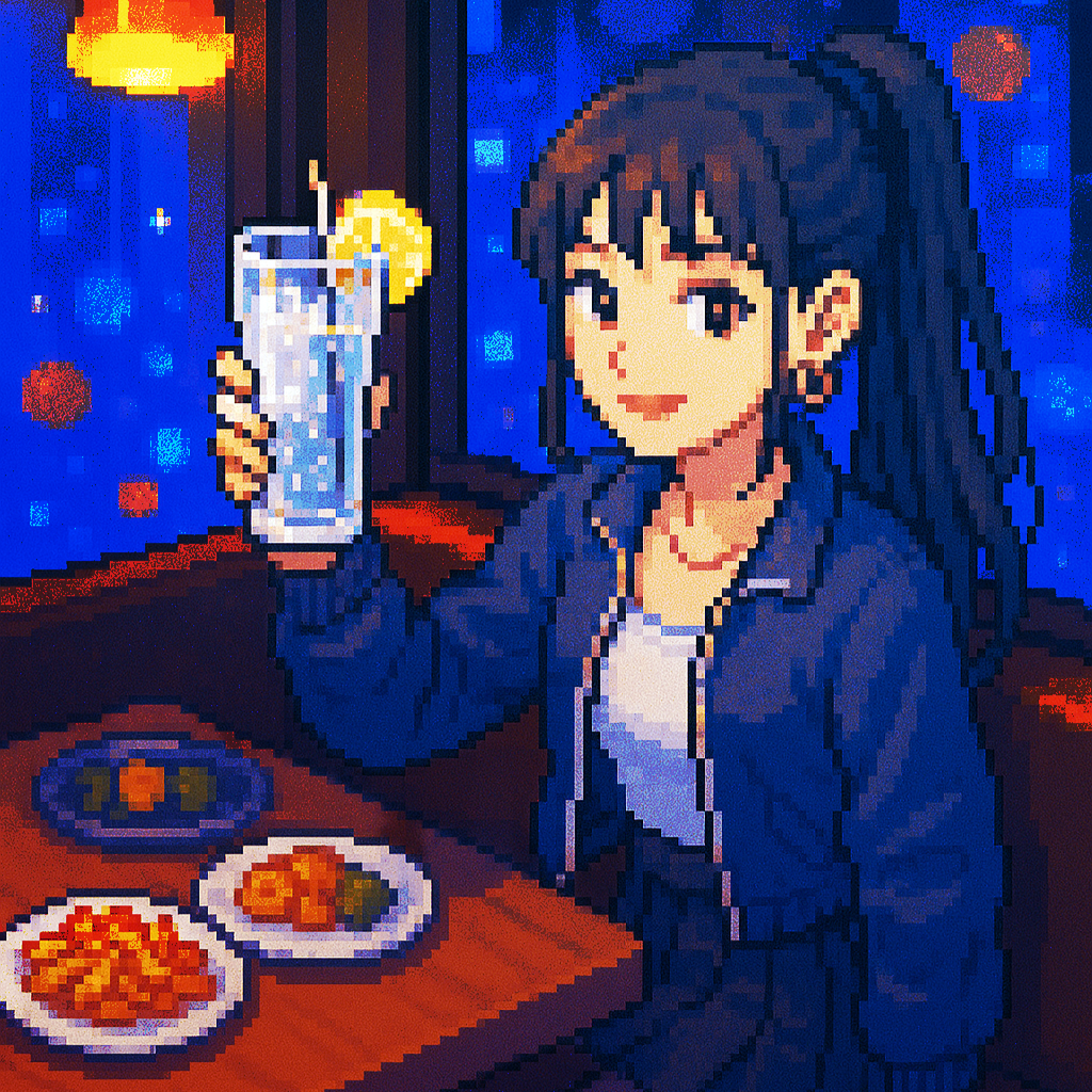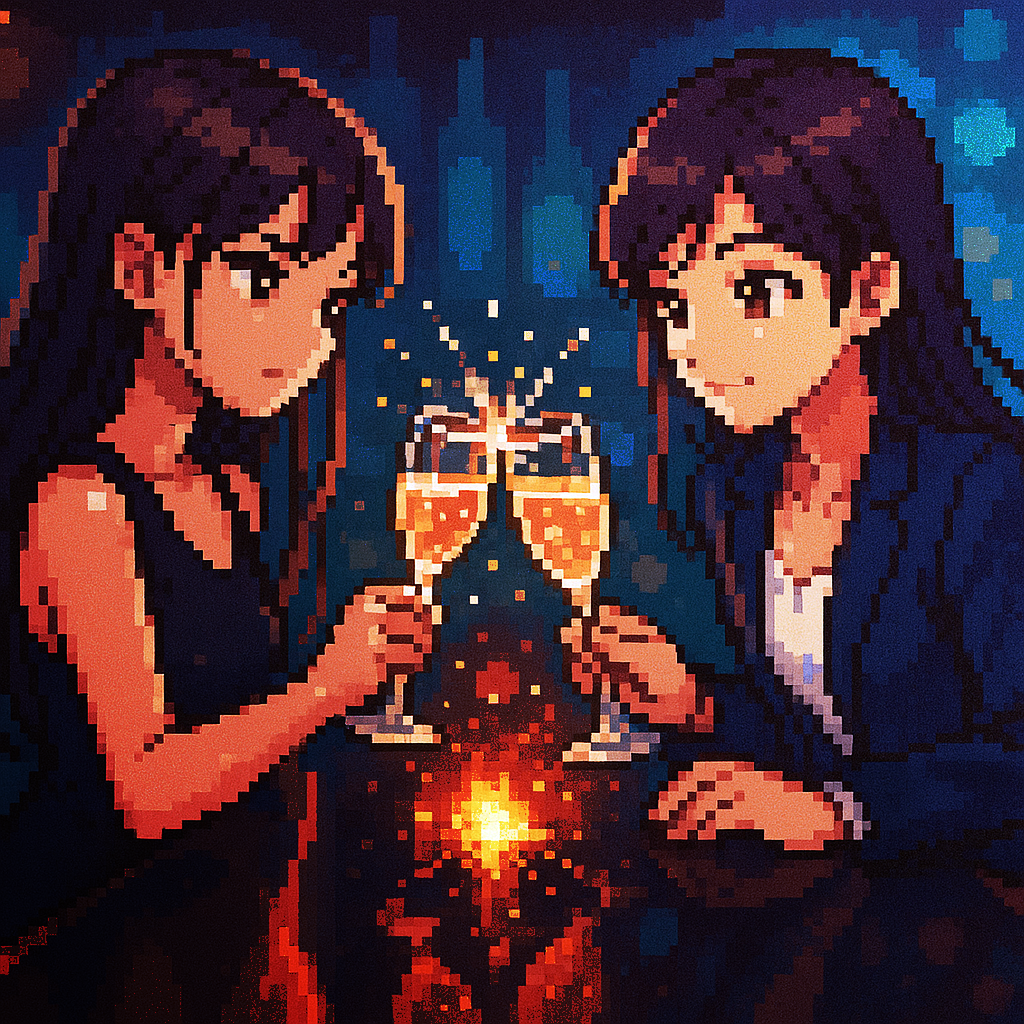 Style: Glossy Japanese kawaii Electro-Pop / Future Disco, 128 BPM, key F♯ min, Drums – four-on-floor kick, crisp snare, bright 16-hat, airy clap, Bass – rubbery syncopated synth bass, octave hops, side-chained, Synths – supersaw chords, glitter 16th arpeggio, FM pluck fills, Lead – pentatonic saw riff with slides; chopped *wordless* vocal shots, FX – reverse cymbal, vinyl down-lifter, bit-crush rise, wide noise, Form