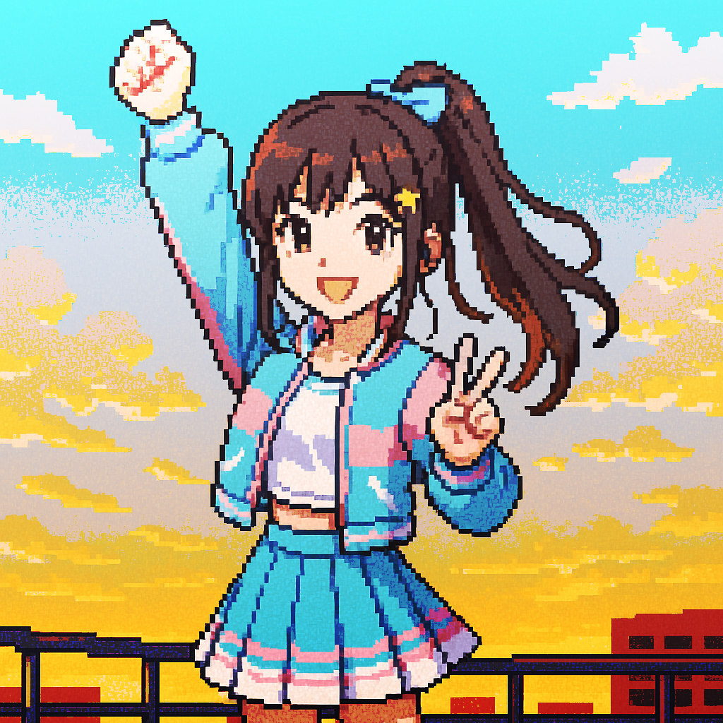 Vocals: Japanese female idol style, straight-tone (flat) delivery with minimal vibrato, bright head-voice, crisp Japanese diction, cute yet precise, 90s East-Coast boom-bap remix, 95 BPM, key F#m, Hard-hitting kick-snare swing with vinyl crackle; fat sub-bass, crunchy hats, Add a memorable 8-bar minor-pentatonic guitar/Rhodes riff for melodic lift, looping every chorus, Structure: 4-bar sample fade-in, gritty rap verse, riff-driven hook, scratch break, tape-stop outro, Head-nod bounce + catchy melody
