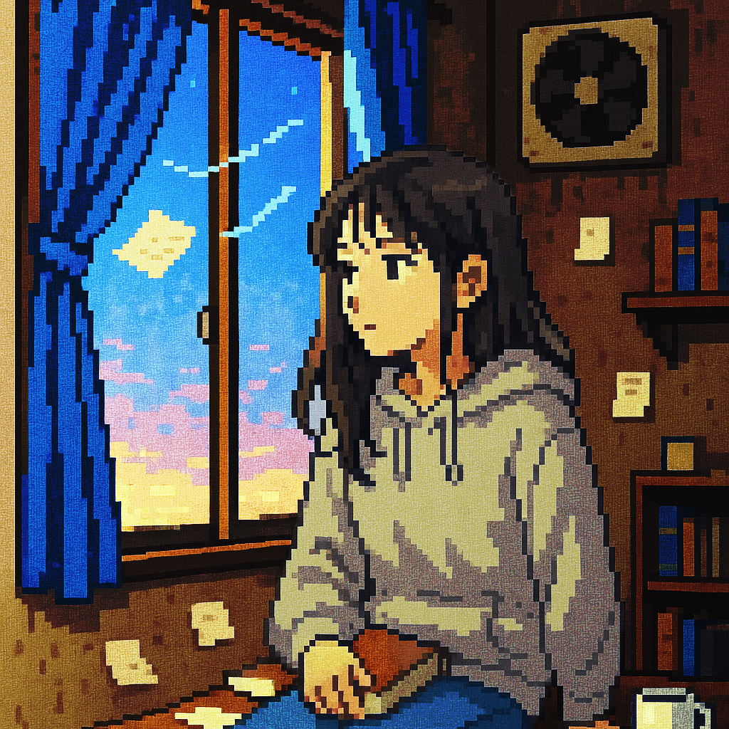 A Japanese female vocalist sings a melancholic melody over a chillwave-inspired instrumental, The song is in a minor key, with a slow tempo and a relaxed, atmospheric feel, The instrumentation includes a synth pad, a simple drum machine beat, and a clean electric guitar playing arpeggiated chords, The vocals are soft and breathy, with a slight reverb effect, The song structure is verse-chorus, with a short instrumental break after the second chorus, The mixing is clean and spacious, with all instruments clearly audible, The overall mood is introspective and dreamy