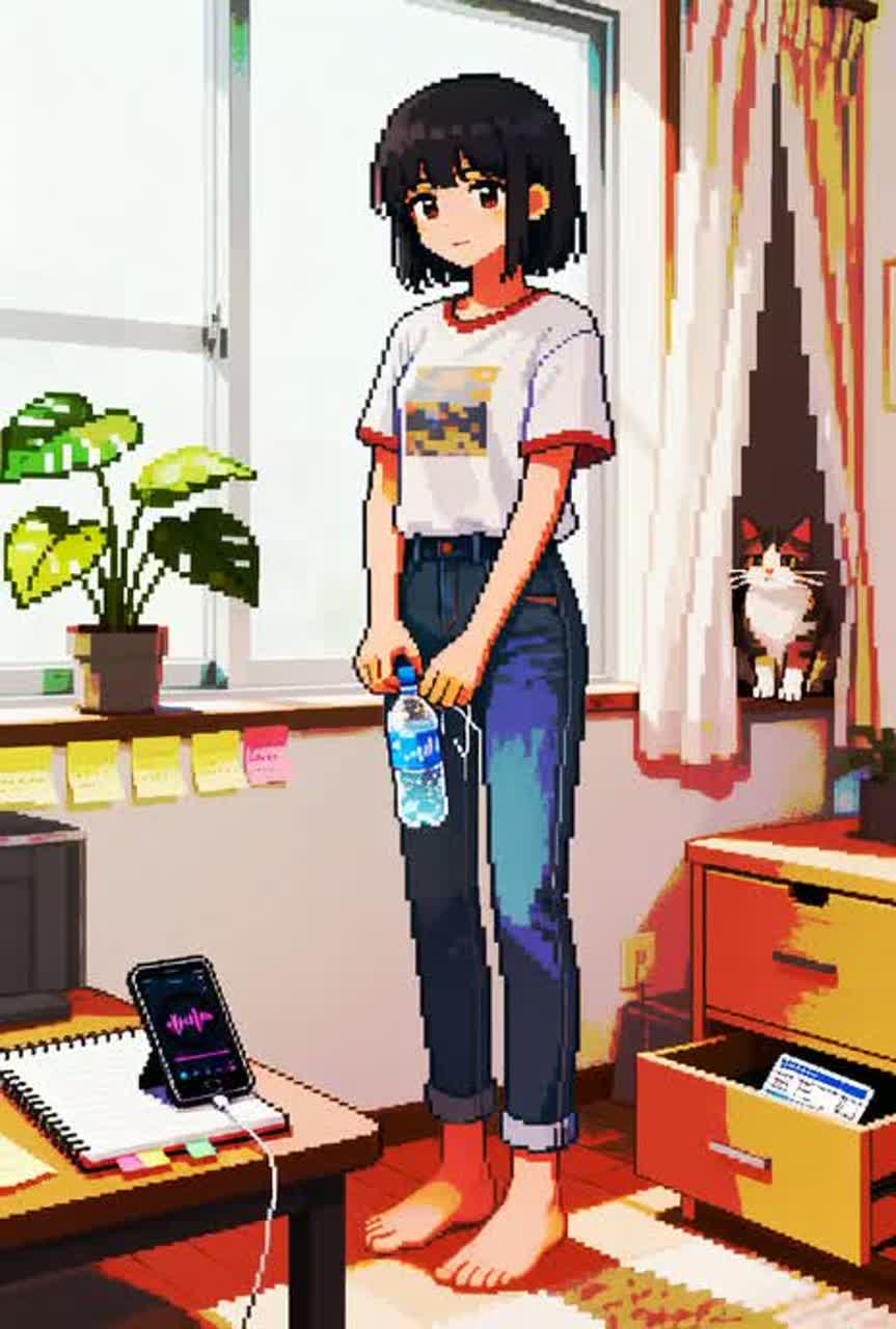 Vocals: Japanese female idol style, straight-tone (flat) delivery with minimal vibrato, bright head-voice, crisp Japanese diction, cute yet precise, Japanese female whisper voice, singing softly in Japanese, intimate and breathy