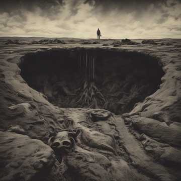 atmospheric, chaotic energy in the chorus, exhilarating, and churning guitar riffs that echo like distant screams, build tension with layers of ghostly soundscapes before unleashing raw, metal, growling verses with eerie whispered harmonies, heavy; male vocals; deep, thunderous drums, dark