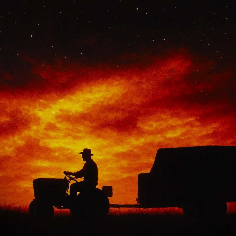 A wistful country ballad starts with fingerpicked acoustic guitar and gentle pedal steel, layered over a rich, resonant deep bass, Haunting dark synth pads swell subtly beneath heartfelt harmonies, creating a melancholic, atmospheric texture that deepens in the chorus