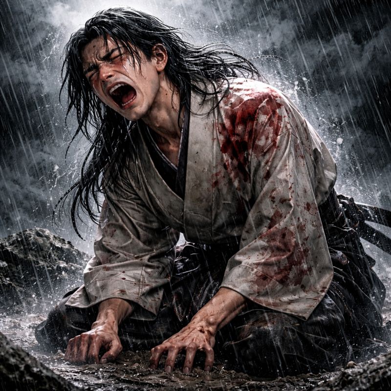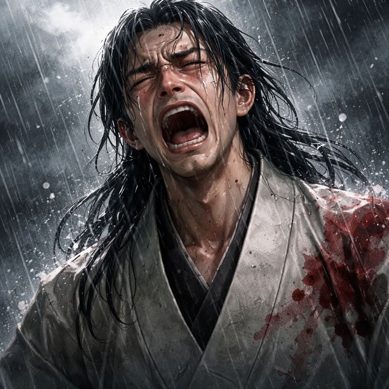 Gothic metal with Japanese influence, up-tempo and dramatic, Dark, tragic, and fanatical mood reflecting obsession with justice, reason, and sacrifice, Melodic male vocals, intense and controlled madness, emotional but disciplined; call-and-response friendly chorus; no rap or spoken-word, Instrumentation: distorted heavy guitars, fast double-kick drums, powerful toms, minor key melodic riffs, shamisen, taiko-style drums, and shakuhachi subtly layered for ritualistic, eerie feel, Harmony: tragic melodic lines, minor key, epic and ritualistic choruses, Music strongly reflects revolutionary fanaticism, suppressed rage, and self-sacrifice, Melodic, aggressive, urgent, driving rhythm; crowd chanting and heroic/ritualistic energy, No pop brightness