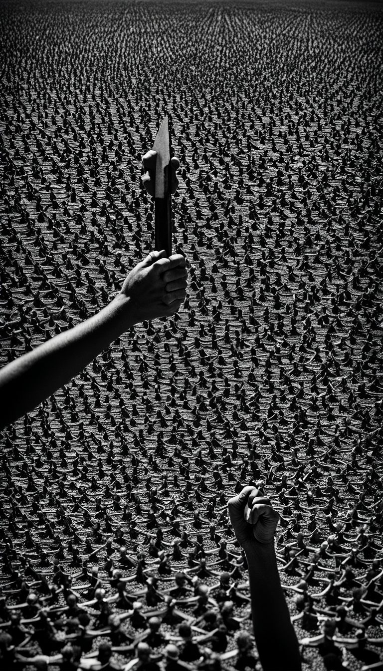 industrial hip-hop, aggressive noise, glitch percussion, distorted vocals, anarchic energy, chaotic sampling, pounding drum machine, digital abrasion, dystopian tension, manic delivery, harsh synth stabs, claustrophobic compression, experimental rap, rhythmic violence, cyberpunk atmosphere, primal shouting, fractured beats, confrontational tone, crunchy production, distorted bass, ruined equipment, lush orchestral background
