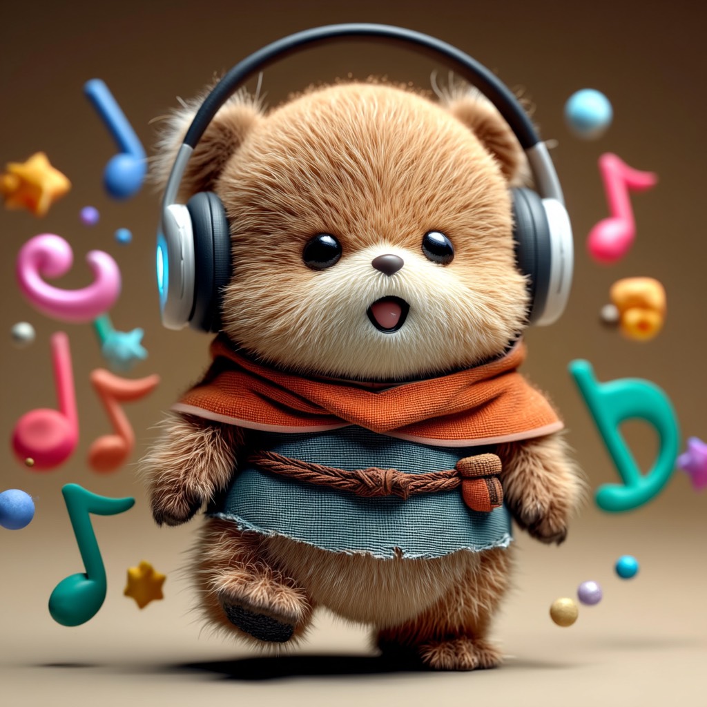Vocal: Young fluffy creature voice (cute and energetic), Cute accent on "おで", K-POP style delivery with attitude