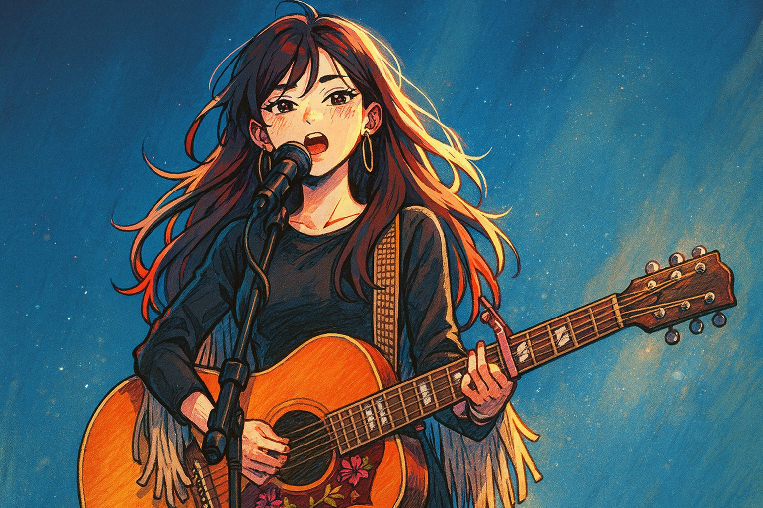 Coffeehouse, contemporary country, classical jazz, acoustic country ballad, Americana tinged, intimate female vocal, soft southern lilt, conversational phrasing, close mic warmth, restrained vibrato, legato melodic lines, fingerpicked acoustic guitar, gentle strummed guitar, muted pedal steel swells, upright bass, brushed jazz kit, soft kick and snare, subtle ambient keys, vinyl record scratching textures, rhythmic glitch effects, spacious mix, warm analog tone, delicate stereo field, detailed digital edits, chopped micro hooks, subtle granular stutters, intimate reflective vibe, nostalgic cozy atmosphere, late night coffeehouse glow