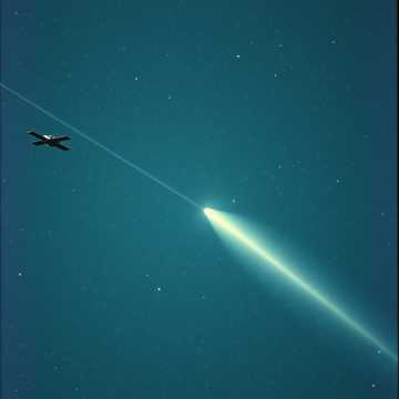 Cinematic ambient sci-fi underscore, restrained and minimalist, slow evolution, no dance rhythm, no percussion unless explicitly stated, emotional subtlety, European 90s science-fiction atmosphere, narrative-driven sound design, wide stereo space, long reverb tails, low harmonic density, Short cinematic motion cue, Directional ambient textures suggesting lift and controlled escape, tense but calm