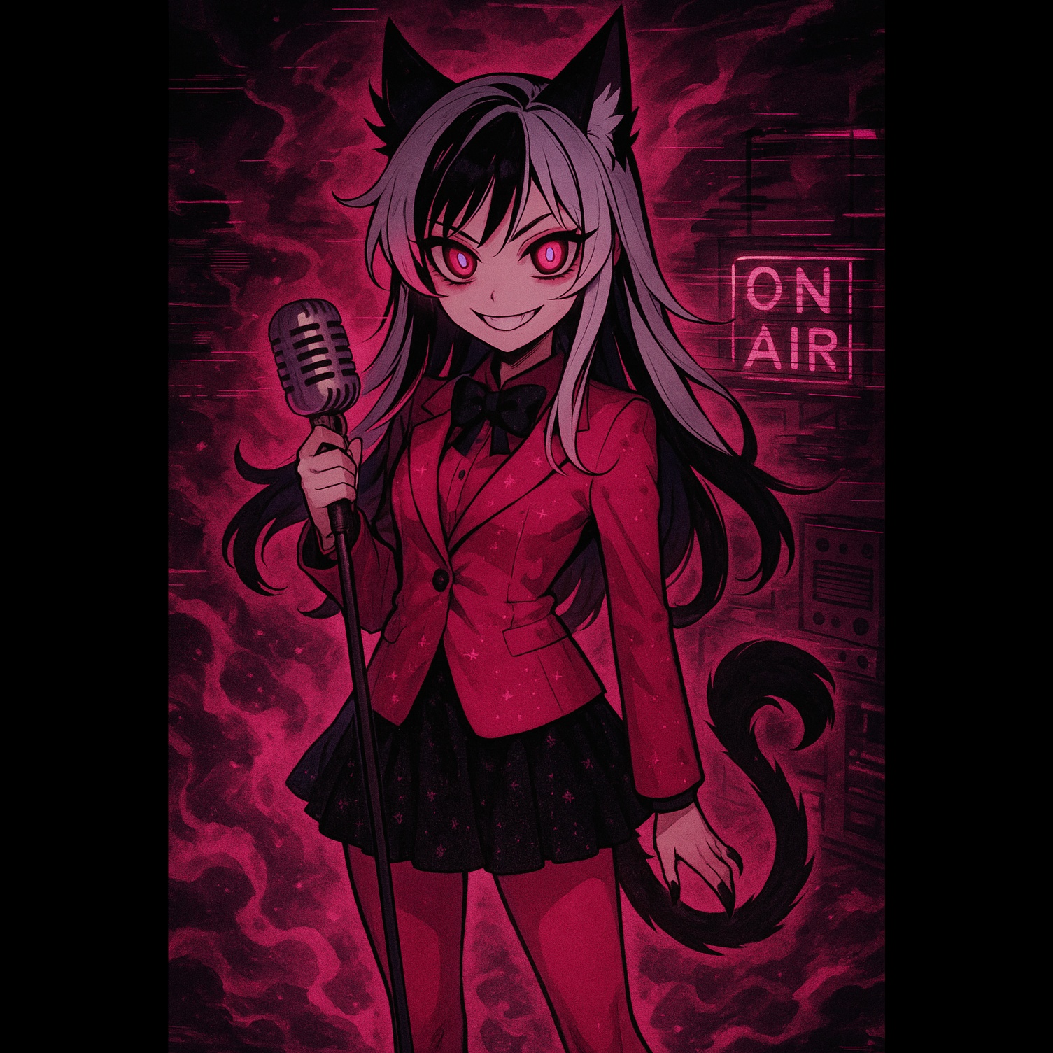 This Dark Pop/Alt Pop track bursts in with syncopated, playful piano atop glitched jazz chords and a mischievous melody, Glitchcore beats tangle with dubstep drops and jazzy bass, mbira and music box textures chime amid chopped FX, sinister static, and rapid, sassy piano, Female vocals glide from coy whispers to theatrical bursts, filtered with radio textures, Dense layers and bold rave production craft an inventive, kawaii, high-energy soundscape