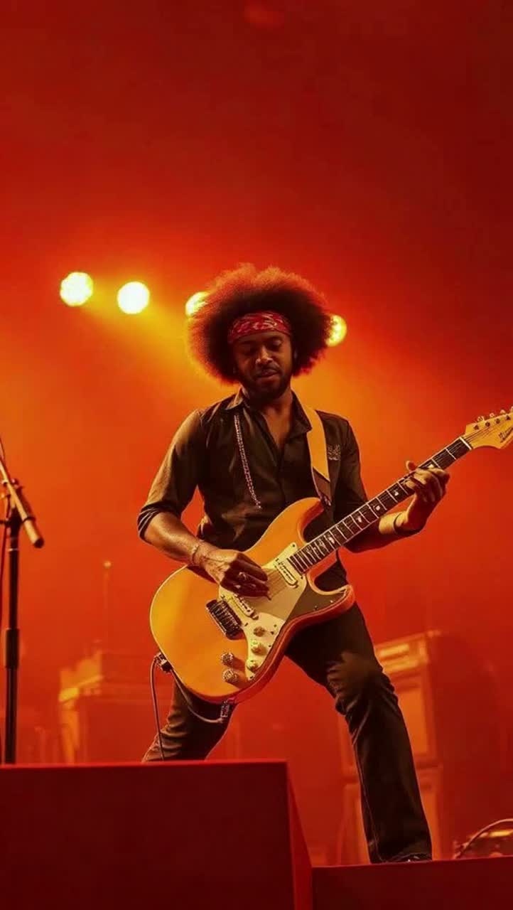 Rock blues Soul 1970s, guitare elctrique melody solo, male baryton bass vocales, guitare effecte, woodstock live concert style jimy Hendrix, bounce, Guitar heavy solo, live concert, male raspy vocals, deep bass grooves, minimalist, dit le titre