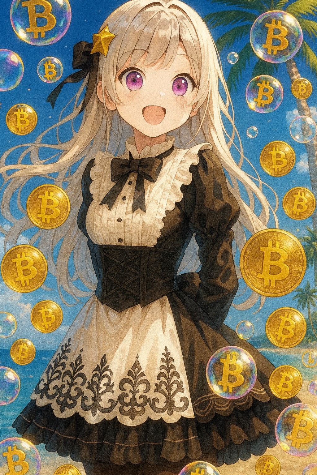 Upbeat Japanese rock track with playful energy, mixing comedy and confidence, Male vocal, cheeky and talk-singing style, sometimes exaggerated with a “キョトン” (confused) reaction voice, Guitars are bouncy and distorted, drums driving with light punk-rock feel, bass walking with groove, Chorus should be catchy and anthemic, almost like a parody anthem, where the singer repeatedly denies knowing about Bitcoin while secretly being excited inside, Include comical pauses, short shouts, and call-and-response style “キョトン” reactions, The vibe is fun, ironic, and mischievous, perfect for live performance with audience clapping and chanting