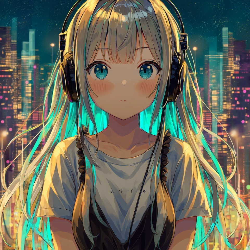 Urban and emotional city pop × lo-fi hiphop track with chill beats, neon-inspired synths, and soft female vocals, The song expresses a girl drifting through the midnight city, headphones on, feeling both loneliness and hope, Gentle verses lead into catchy choruses repeating the phrase “Neonに溶けて, ” blending dreamy pads and mellow rhythms with a bright, cinematic vibe, Perfect for late-night listening and SNS sharing, balancing melancholy with quiet determination