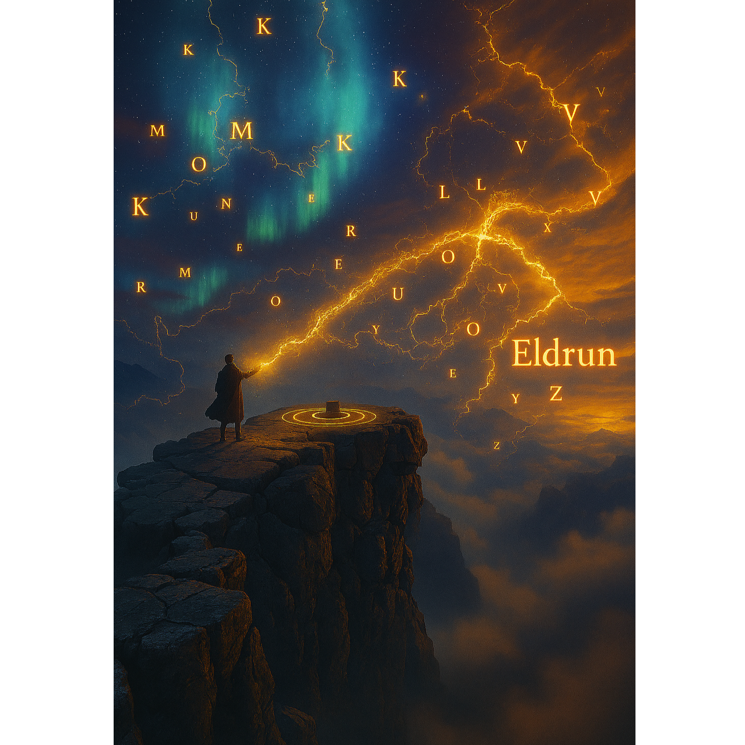 A cinematic Celtic-Nordic ancient chant, slow tempo (80 BPM in 3/4), Epic and mystical, blending Celtic harps, Nordic war drums, low male choirs, and ethereal female voices, Language: fictional ancient tongue "Eldrûn" with phonetic Celtic-Norse sound, Atmosphere: sacred, foggy, reverent — evokes ancient creation, the first fire and the birth of light, Instruments: harp, hurdy-gurdy, frame drums, cello, male and female choirs, low horns, Rhythm: steady, ritualistic pulse with echoing voices in the distance, Mood: majestic, spiritual, emotional and powerful, Reverb-rich, deep and immersive, with chanting dynamics that grow from whisper to full choir, Lyrics: