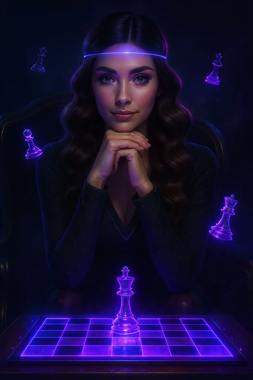 Psy-Electro Glow, House Groove, Eurodance Pulse 90s Revival, Disco Synth Groove, Dark Electro-Pop Atmosphere, Cyber Tribal Percussion, Ethereal Industrial Pop, Dreamwave Female Vocals, Neon Gothic Ambience, Crystal Pulse FX, Magnetic Reverb Layer, Glitch Echo Percussion, Digital Chess FX Percussion, Whisper Breath Loops (“hmm… ahh… uhh…”), Layered Female Vocals, Reversed Echo FX, Digital Ritual Pop, Minimal but Magnetic Groove, 113 BPM, Key: F minor