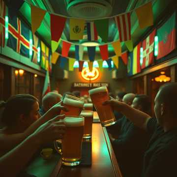 upbeat Celtic folk, Irish folk-punk rhythm, acoustic guitar, banjo, fiddle, tin whistle, lively percussion, energetic handclaps, jaunty beat, spirited atmosphere, group vocals, warm hearty singing, conversational lead vocal, robust male grit, bright folk textures, swirling fiddle lines, banjo rolls, whistle flourishes, gradual build‑up, driving rhythm, celebratory transitions, foot‑stomping, communal sing‑along vibe, pub‑style, festive mood, nostalgic yet rousing, rustic fiesta, hopeful, bold, playful, cultural tag: traditional Irish, dance‑hall folk, This description evokes a high‑energy Celtic folk piece driven by acoustic guitar, banjo, fiddle, and tin whistle aligned to a lively percussion backbone—capturing the spirited, communal feel of an uptempo pub anthem, Vocals are delivered in a warm, hearty male tone with group harmonies enhancing the sing‑along quality, Textures are bright and dynamic: folk‑punk, Celtic punk, melodic hardcore, acoustic banjo and fiddle leads