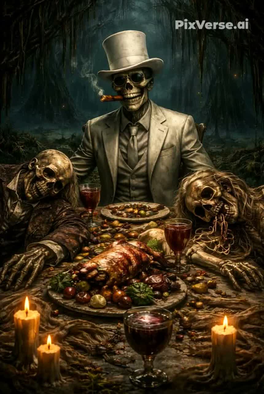 Slow Doom metal, powerful, Scary, Symphonic metal, black metal, darksynth, piano, slow, metal guitar, drum and bass, darksynth, jazz, Voodoo Doom Metal, Theatrical Horror, Dark Sludge Metal, Occult Atmosphere, Male vocals soaring high notes, powerful vibrato, gritty tenor, theatrical performance, Ominous Chants, Heavy Tribal Drums, Haunting Flutes, Cinematic Horror Soundscape, 80bpm, Deep South Swamp Blues, Tribal Percussion, Whispered Voodoo Chants, Heavy Distorted Bass, Cinematic Bayou Horror, Progressive Build-up, Dark Ambient, Occult