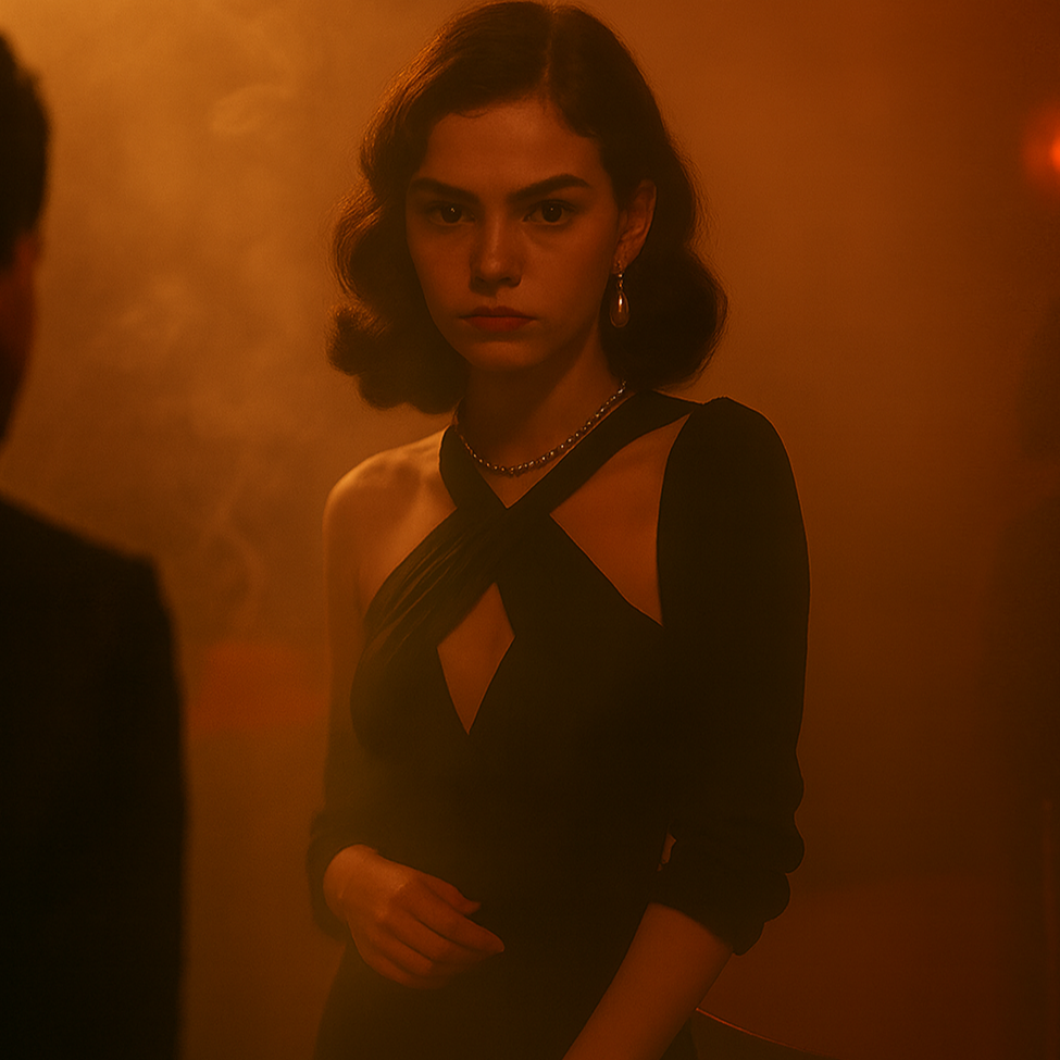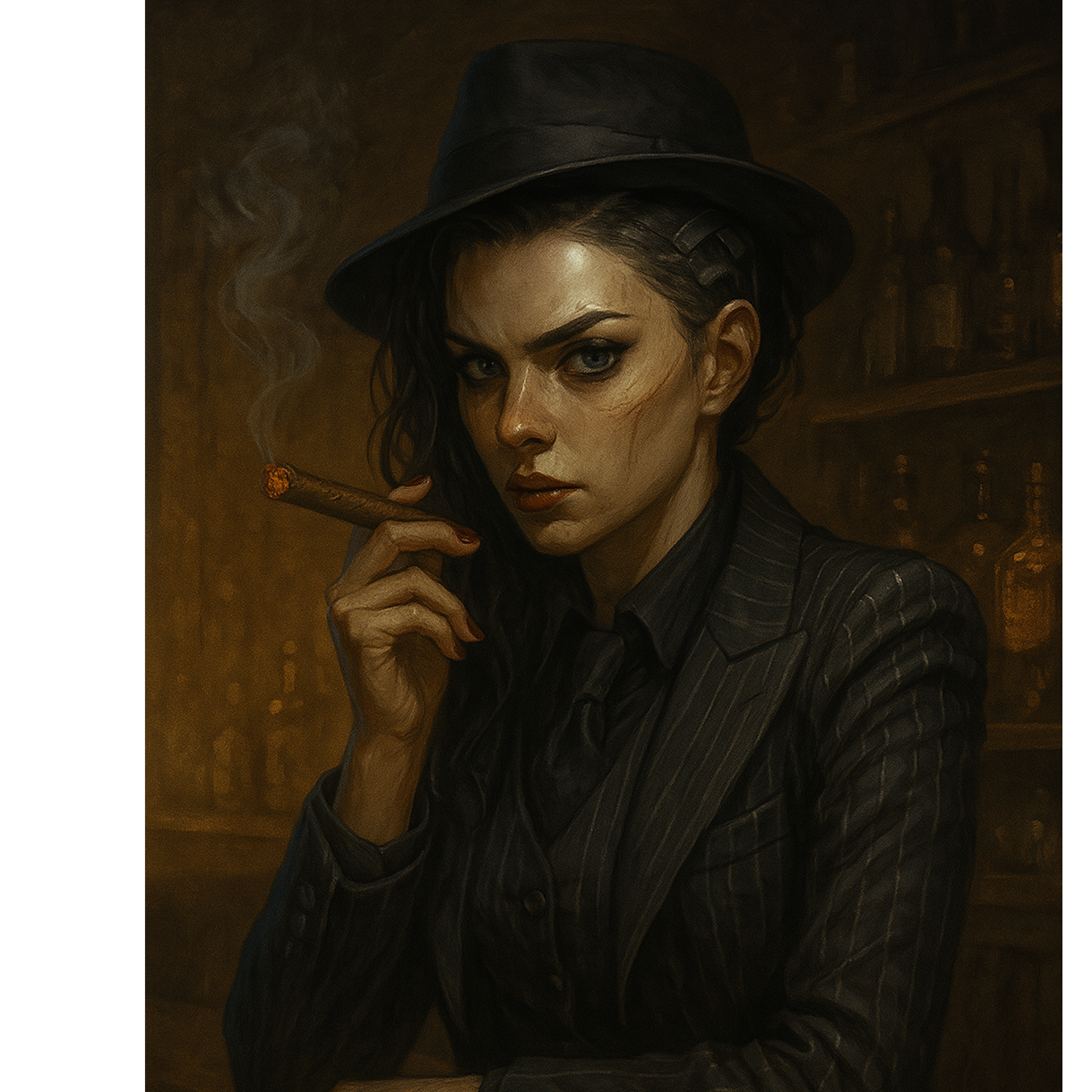 A smooth and sultry 1930s jazz song with a vintage cabaret vibe, Female lead vocals with smoky, expressive tone, Piano, upright bass, brushed drums, soft muted trumpet and saxophone, The melody is slow and dramatic, with minor key chords and a cinematic swing feel, like a noir lounge performance, Think film noir, The lyrics tell the story of a mysterious femme fatale who rises to power in the underworld of 1930s Chicago through charm and manipulation, Rich atmosphere, retro flair, smoky room energy
