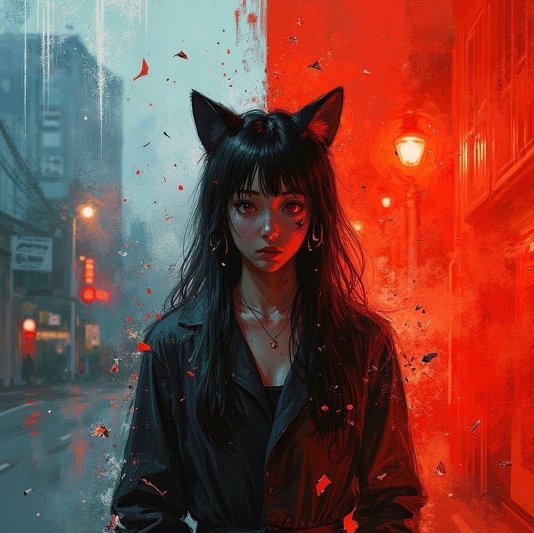 Female, dark, sad, dark japanese, phonk beat, hard beat, intense, Neo-Soul, Lo-fi, Melodic, Lush Synths, high quality, New Wave