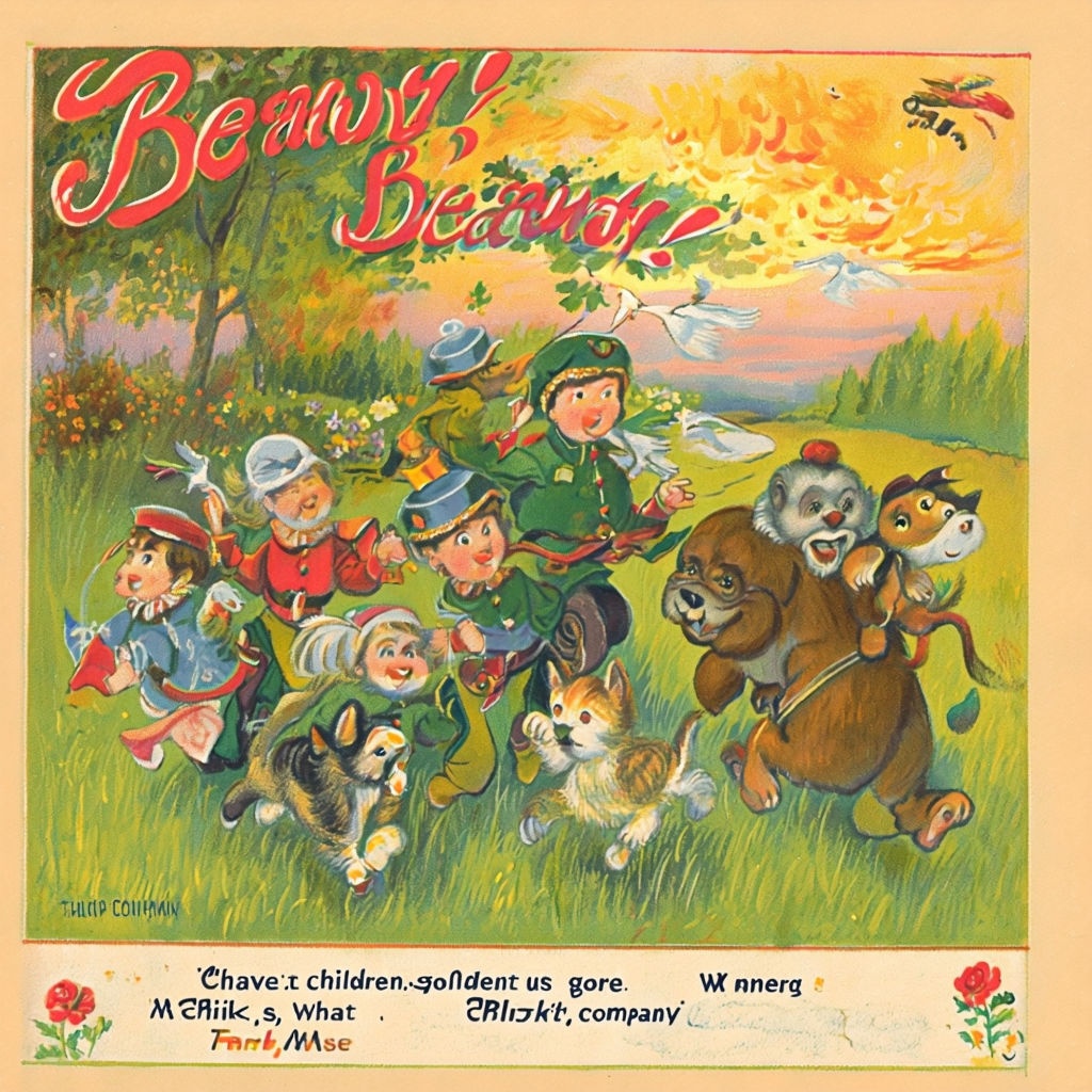 Children's lullaby song, moderate tempo, children's voice, gentle performance, violin, piano, harp, country
