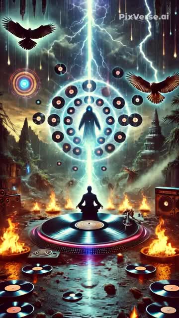 reggaeton drums, shamanic hand percussion, mongolian throat singing, scratch fx, dubstep bass drops, synthwave pads, ritualistic vocal chops, echo whispers, female breath fx, haunting male lead voice, tribal chants, deep sub-bass, spiritual breakdowns, 808 kicks, glitch effects, distorted vinyl crackle, ceremonial rhythm, heavy echo delays, low growl harmonics, call and response vocals, looped shamanic laughs, melodic synth stabs, ambient wind samples, reverse vinyl spins, ghostly reverb trails, intense drum circle energy, atmospheric synthwave transitions, nlp hooks with vocal emphasis, cliffhanger fx, chant overlays, psychedelic dub glitch textures, bass ritual tension builds, mystical stereo vocals, voice near mic, hard reverb hits, instrumental break sections, emotional vocal performance, strong cinematic structure