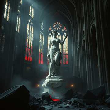 rock, Gothic symphonic metal with male vocals, pipe organ and low strings under the verses, choir pads and distorted guitars crashing in on the choruses, Tempo mid-fast, dramatic crescendos and sudden drops, dark cabaret piano flourishes between sections, thunderous toms and cymbal swells driving the emotional arc, gothic symphonic metal, dark cabaret, emotional