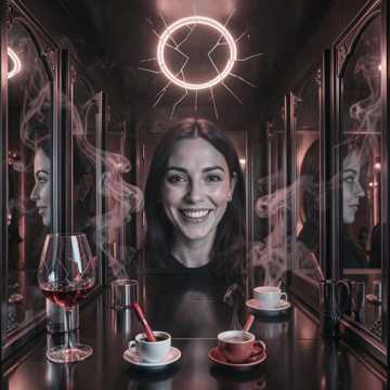 Gothic symphonic metal with female vocals, haunted piano arpeggios, a triple-layer string surge, choir blooms in the choruses, gut-punch tom fills, distorted low-end guitars, and a cabaret wink in the verses that swells into cathedral-scale crescendos, gothic symphonic metal, dark cabaret, emotional, rock