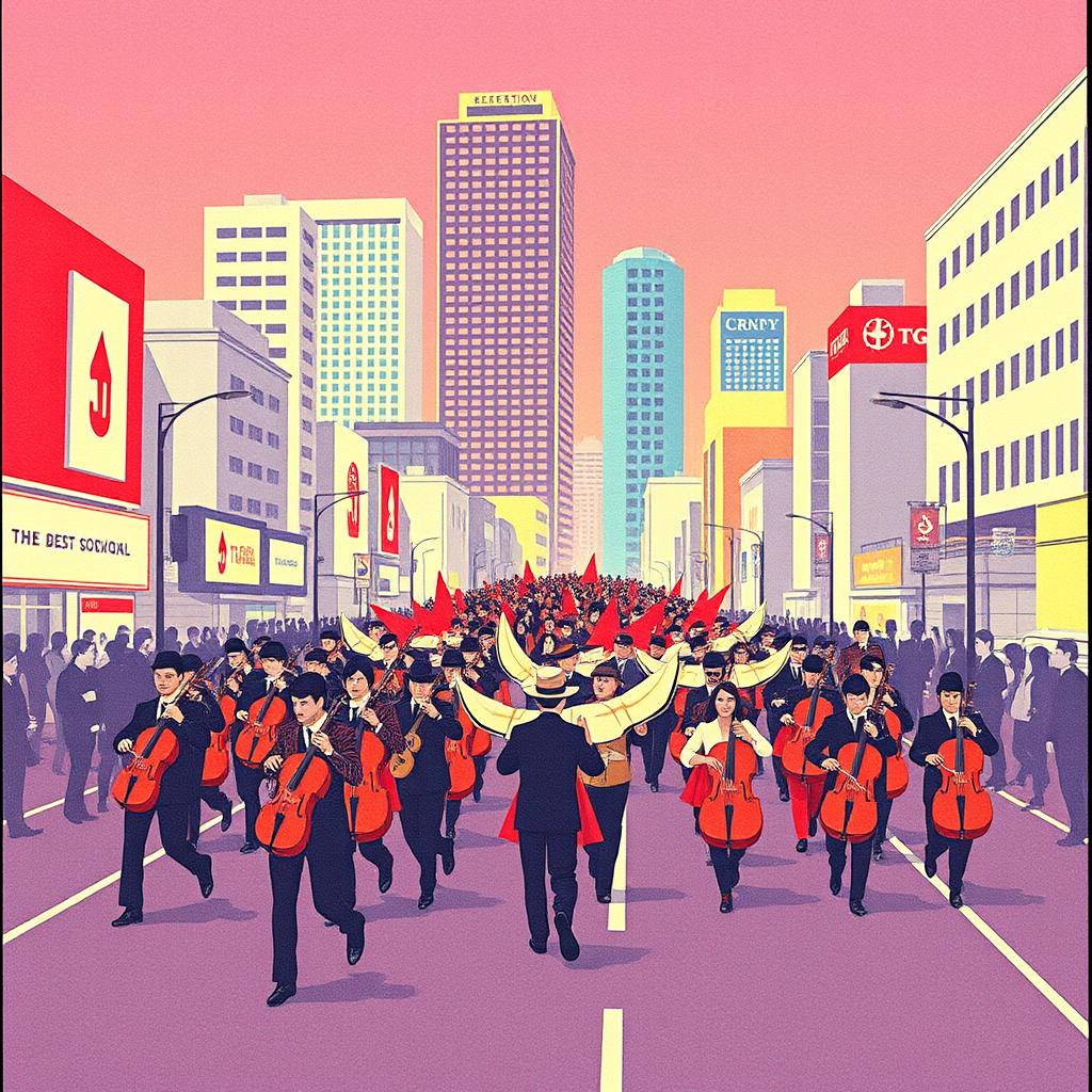theme, deep, cinematic **male vocals**, marching band drums, percussion orchestra, marching band