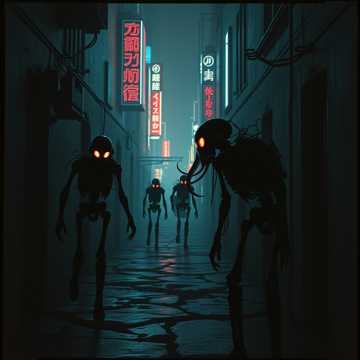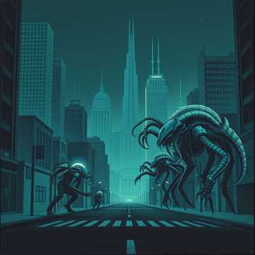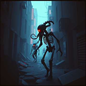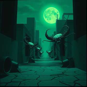 Dark metal fused with sci-fi horror textures, crawling rhythm, organic bass movement, wet distorted guitars, internal-body sound design, pulsating dread drones, whispered monster vocals, tension that never resolves