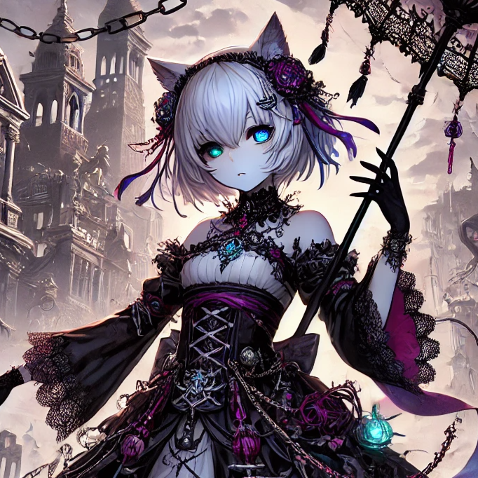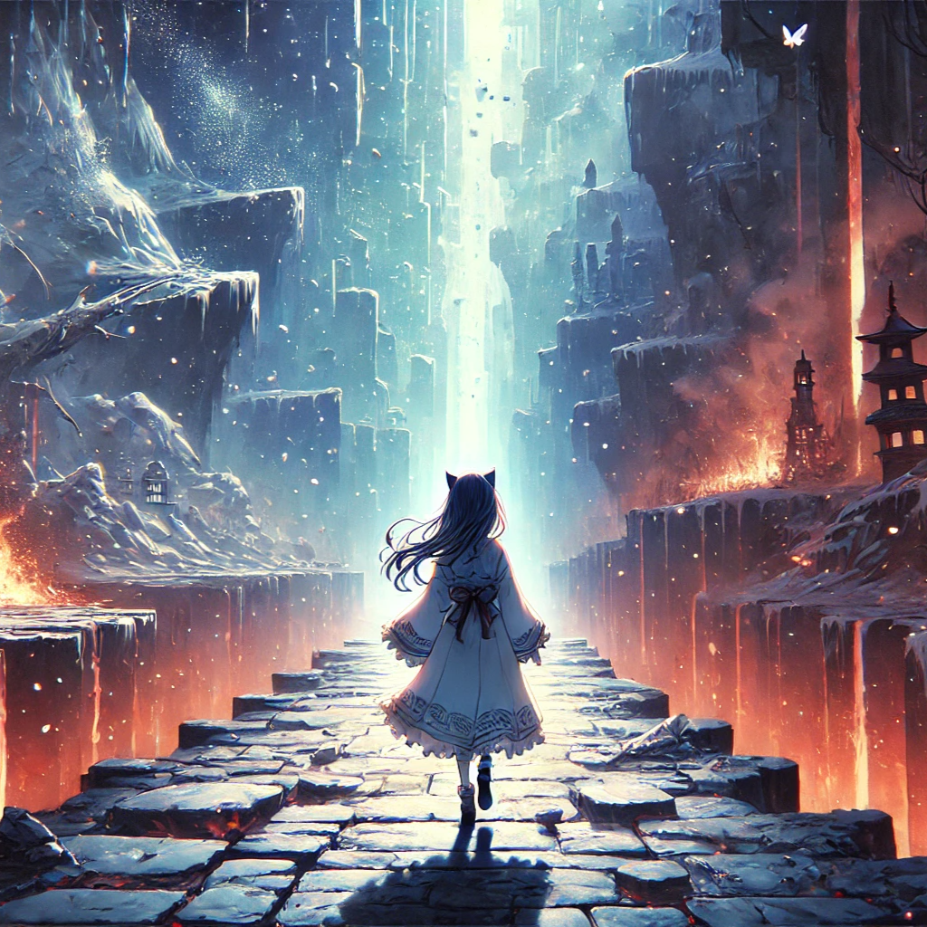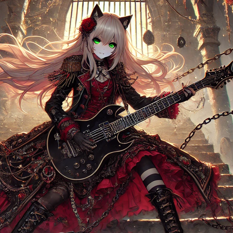 female vocal, Doom-inspired Japanese anime metal, slow and heavy in minor keys with a wandering, oppressive mood, Tempo ~90 BPM, mid-slow pace with unstable shifts, Down-tuned guitars deliver crushing sustained chords and minor tremolo harmonies, bass drones deep, drums heavy with tom fills and rare double-kick climaxes, Low strings, choirs, and faint violins add ritual depth, accented by subtle taiko and mokugyo, Atmosphere soaked in reverb, with distant bells echoing like judgment halls, Vocals low and wavering in verses, soaring yet restrained in choruses, layered with chant-like harmonies and whispers, Mixing emphasizes crushing low-end, wide reverbed guitars, and cavernous space, balancing suffocating weight with fragile fragments to evoke endless wandering through doom