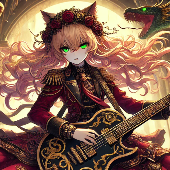 Japanese Wafu and Visual-Kei, anison, female vocal, melodic metal, fast and majestic (~160–170 BPM), D# Minor Pentatonic Scale, Heavy down-tuned riffs, deep distorted bass, double-kick drums, ritual snare patterns, Main layers: dark strings, brass, choirs, cathedral pads, bells and gong accents, Chorus-first structure with soaring high clean vocals, strong overtones, layered choirs for grandeur, Verses lower and solemn, narration with reverb as the king’s voice, Bridge: orchestral rise and ritual drumming, Final chorus: full instrumentation, powerful sustained vocals, overtone-rich resonance, Mixing emphasizes wide guitars, heavy bass, clear commanding vocals, orchestral depth, and cathedral-like atmosphere
