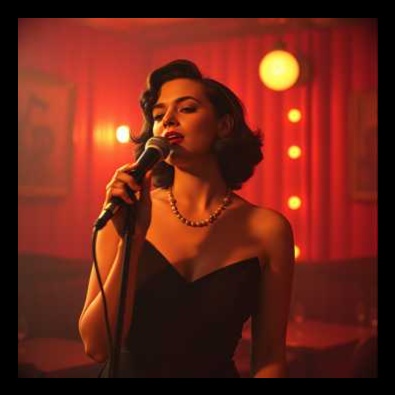 The warm and elegant vocals are expressively expressed with delicate vibrato and the feel of a vintage microphone, The elegant and romantic atmosphere is reminiscent of a smoky midnight jazz club, The composition follows the classic AABA jazz standards, featuring skillful lyrical phrasing and melodic scat in the bridge