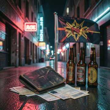 metal, Galloping 150 BPM twin-guitar power metal in the vein of 80s British heavy metal; driving 16th-note rhythm, harmonized leads, and double-kick bursts, Verses tightly palm-muted, vocals push in a bright high register; chorus explodes with open chords, stacked gang shouts on title line, Brief melodic guitar break after second chorus, then a shout-along outro, Male vocals, speed metal, power metal