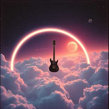 An immersive fusion of cinematic orchestral and synth-driven trance, guided by the space-rock electric guitar spirit of classic Hawkwind, Pulsing arpeggiated synths, warm pads, and sequencer grooves form a wide, cosmic foundation, while soaring strings and restrained orchestral swells add cinematic scale, Electric guitar riffs, treated with delay and reverb, cut through the mix with psychedelic drive and raw energy, The track feels expansive and purposeful, balancing trance momentum with space-rock power, creating a vast, atmospheric journey that is symphonic, grounded, and emotionally immersive
