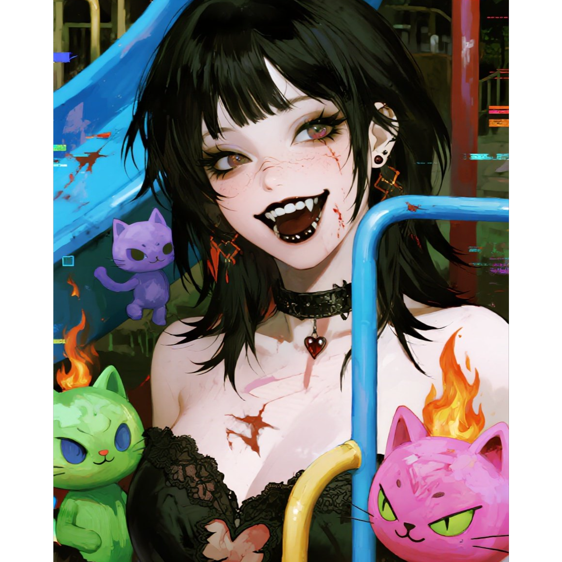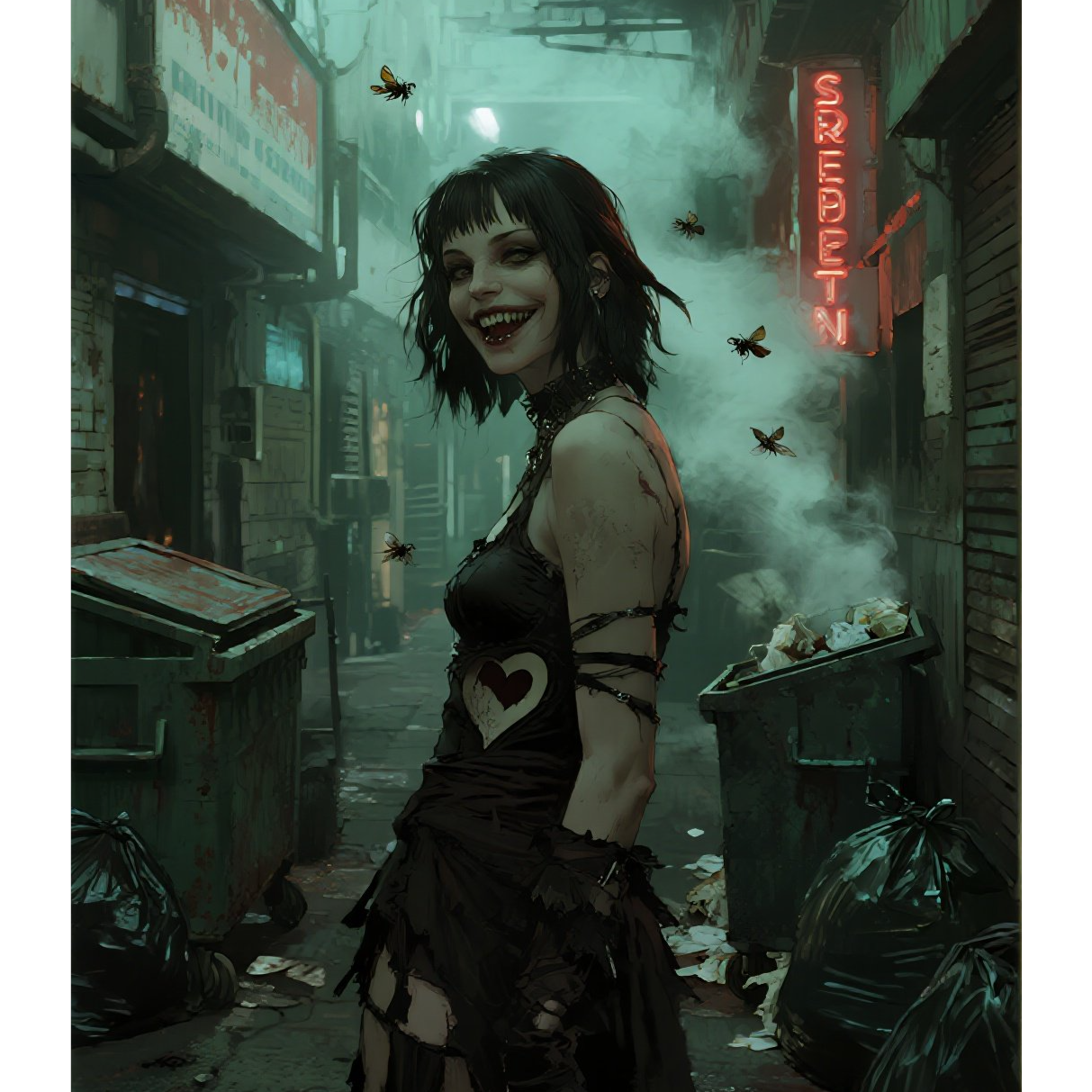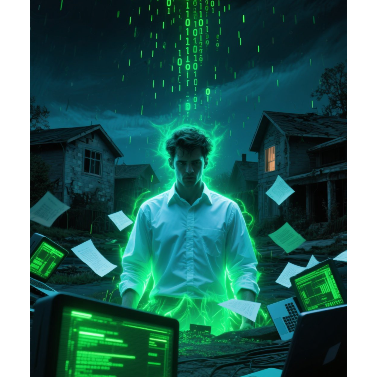 Guitars: cutting, overdriven and reverb-laden, like concrete screaming, Drums: chaotic, with a broken rhythm, accents on unexpected beats, Synths: industrial, cold, glitchy - an imitation of glitched neurosignals, Vocals: verses - half-whispered, almost spoken word (dry and scary, like in a street confession); choruses - explosive screams, a multi-layered choir, like a crowd simultaneously objecting to technology, Breakdowns: glitchy, with noise inserts, like the brain freezes