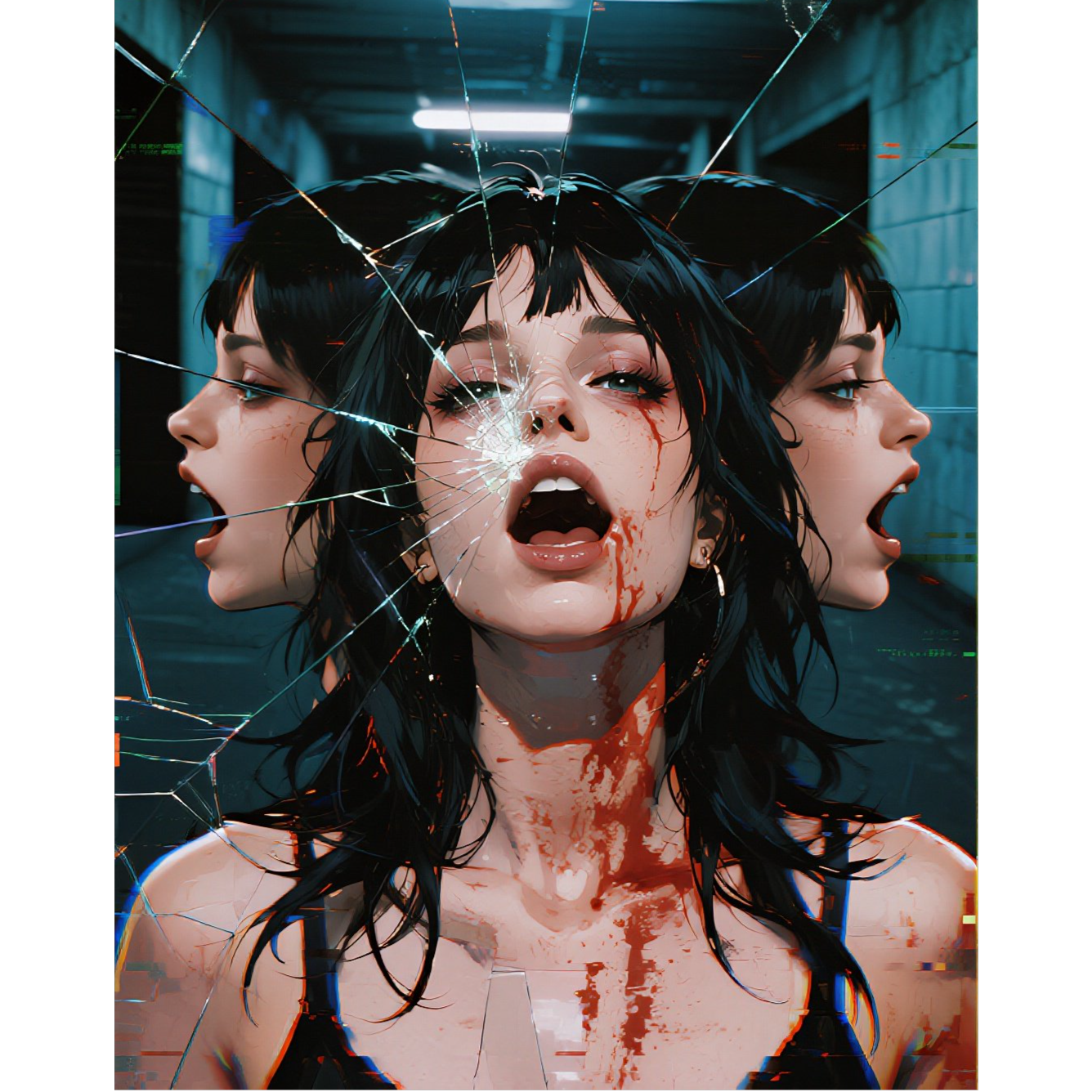 Guitars: jagged, with a "split signal" effect, jumping panoramically from channel to channel, Bass: monotonous, pulsating, like a metronome in parallel universes, Drums: with sudden glitches and pauses (a feeling of "failure" into another world), Synths: glitch/noise, echo as if from empty corridors, Vocals: verses - whisper / conversation, like an internal monologue; choruses - an explosion of hysterical screaming, as if different "versions of oneself" are screaming in chorus; breakdowns - voice overlays with delays, like an echo from other realities