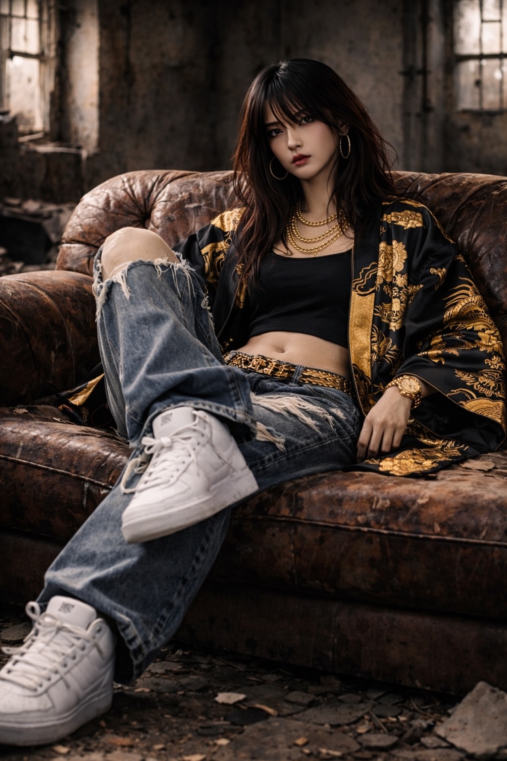 rap, Hard-edged boom-bap with distorted 808s and crisp snares; verses ride a mid-tempo pocket with aggressive female vocals up front, doubled on key punches, Hook explodes with gang shouts, siren FX swells, and a syncopated bass line, Sparse minor-key piano stabs in the verses, then layered chant vocals and filtered risers lift the chorus, Tight, punchy mix with gritty saturation on the master, strong, vocal