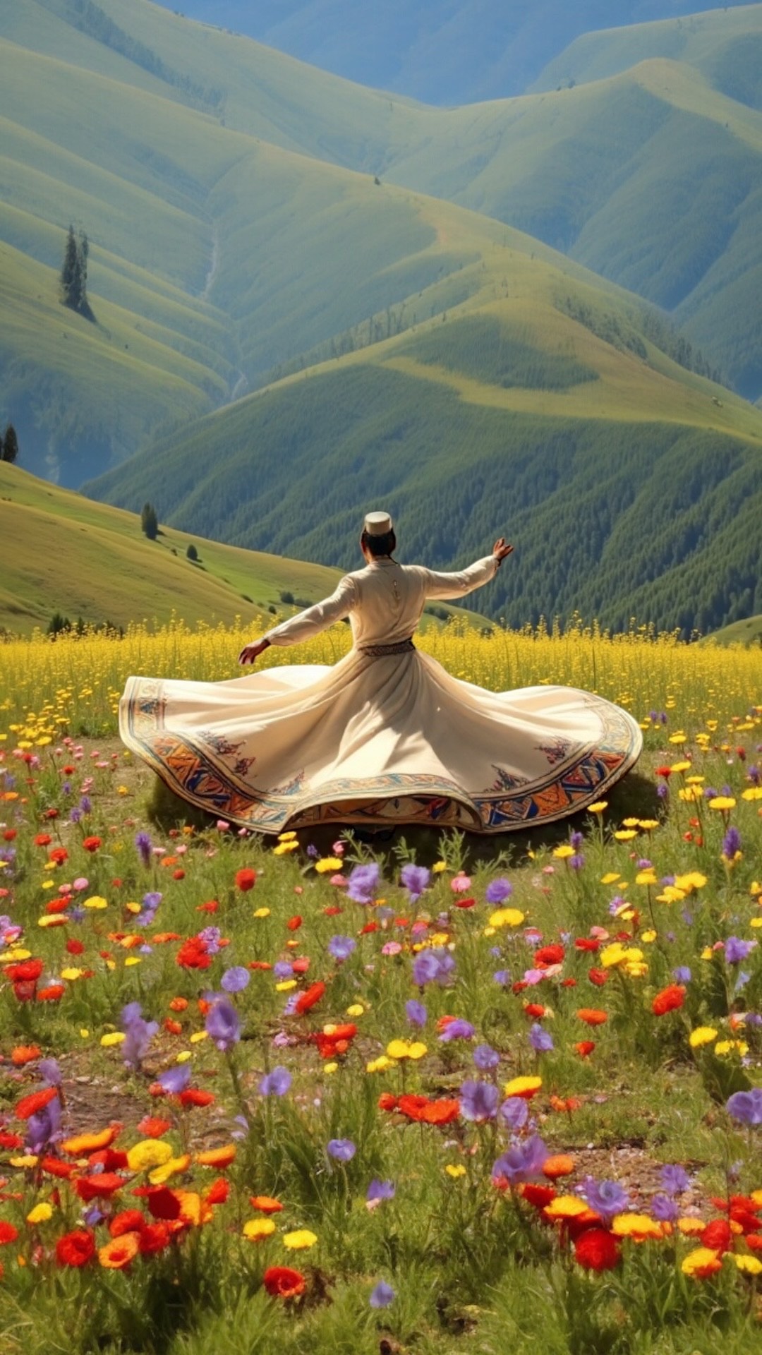 andalusian sufi orchestral fusion; catchy rhythmic intro with hand drums and qanun riff, ney hook layered with clapping; immediate entry of choral chant as hook; rich orchestral arrangement with oud, qanun, ney, deep strings, frame drum, riq; sama‘i thaqil 10/8 rhythm fused with cinematic layering; melismatic male lead vocals with choral call-and-response; epic yet catchy sufi-andalusian vibe, courtyard reverb, grand but hook-focused; progression from hooky intro into full refrain, building ecstatic trance