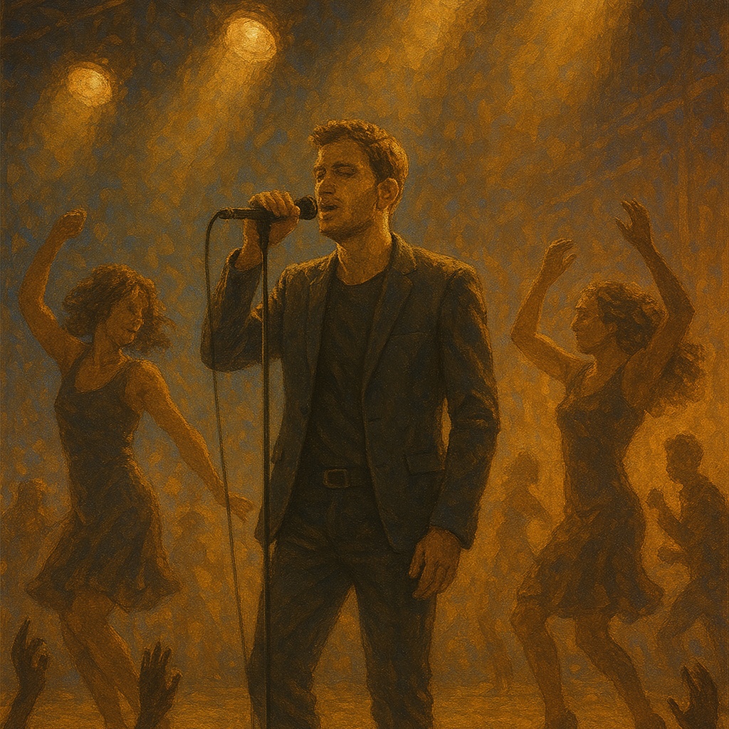 Male vocals, Deep pop-dance ballad in D minor/G minor at 120 bpm, fusing dance pop, lounge house, and synthwave, Lush synth layers with โellowโ textures blend into atmospheric, multi-layered beats, Cinematic pads and vocal effects rise over a throbbing, deep bassline, balancing groove and mood, Low chest voice timbre with hoarseness