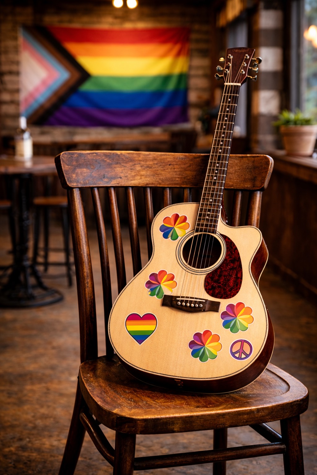 indie, coffee Shop, cozy, acoustic guitar only, plucking, duet