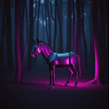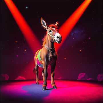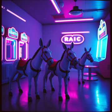 rock, High-energy synthwave rock with galloping tom patterns and bright arpeggiators, Male vocals, playful and theatrical, with a big, shout-along hook, Guitars crunch on the downbeats, bass chases the “hoofbeat” rhythm, and choruses explode with stacked gang vocals and a soaring lead line, Bridge leans into a dizzy, pitch-bent synth solo before a final, triumphant chorus, magical, beats
