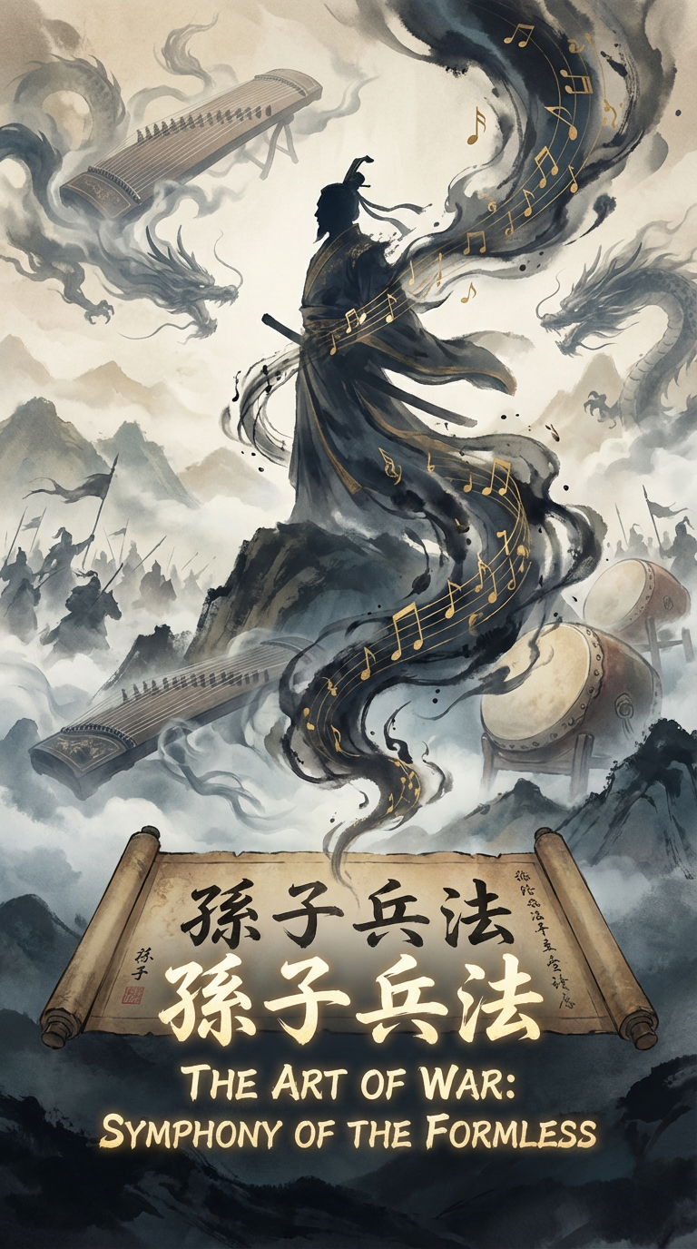Cinematic Score, Dark Avant-Garde Orchestral, Guqin, Erhu, Taiko Polyrhythms, IDM Glitch, Deep Drone, Spoken Word, Epic Choral, Dynamic Swells, Surround Sound, Industrial Ambience, Ostinato Strings