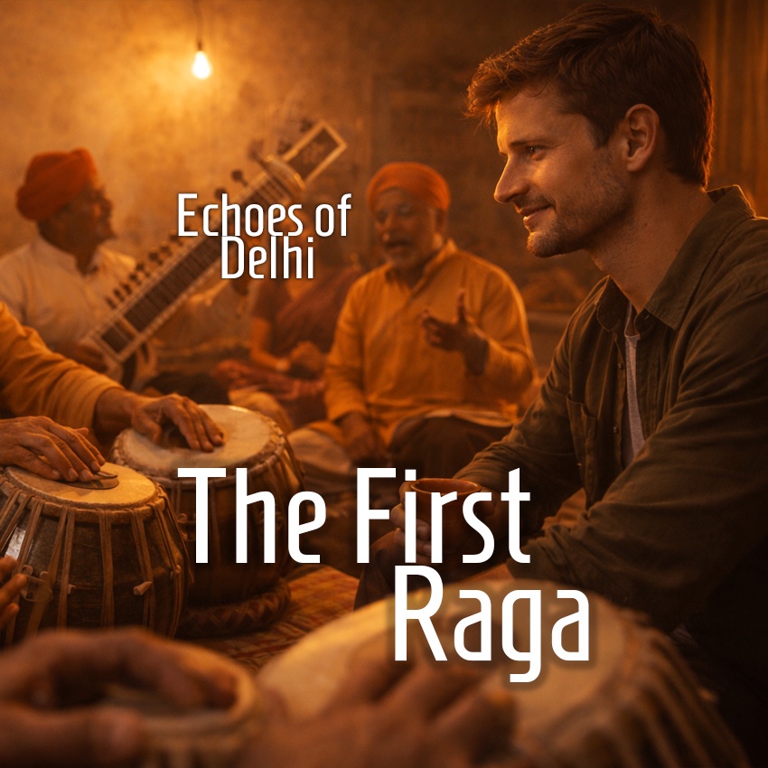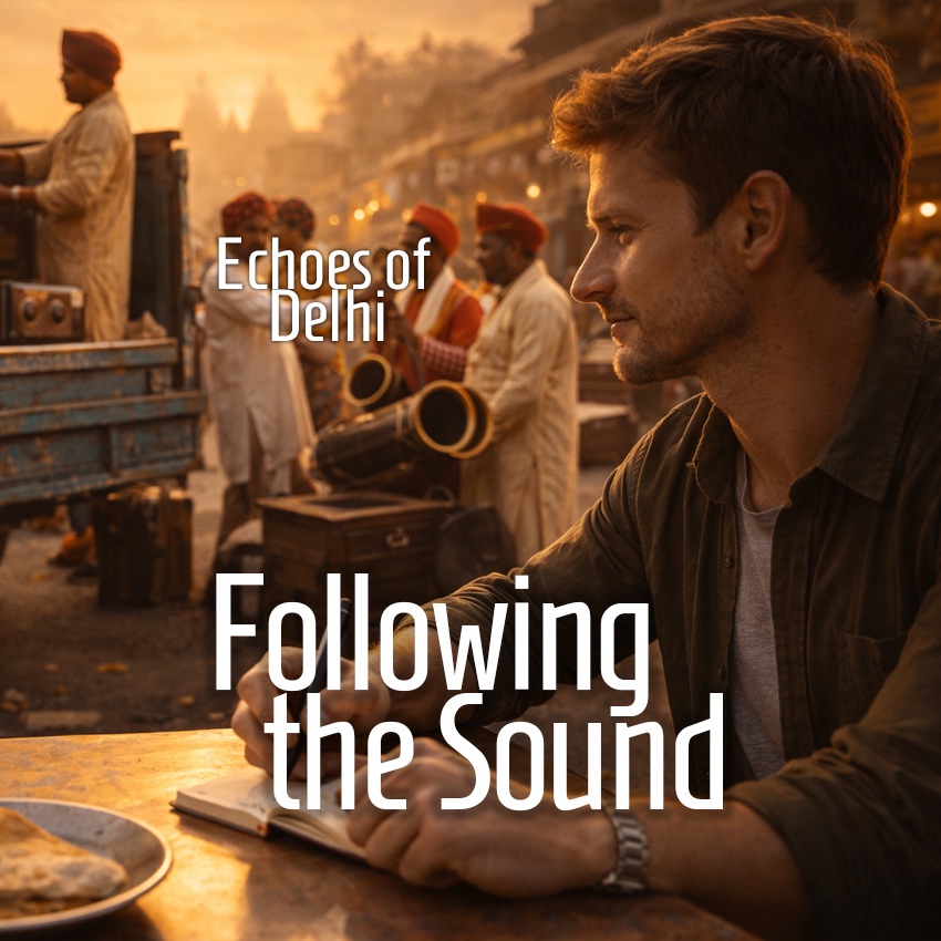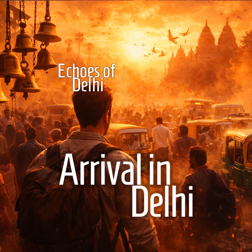 Elyan arrives in New Delhi at dawn after leaving Marrakech, In the airplane he received a call from Karim: the producers have not made their decision yet, Instead they challenge him to travel further and collect the sounds of the world, When he steps out of the airport, Delhi hits him like a storm: thousands of horns, rickshaw bells, engines, voices in many languages, street vendors calling, temple bells ringing in the distance, The heat, dust and spice-filled air overwhelm him, At first he hears only chaos and noise with no rhythm at all, But slowly a hidden pulse begins to emerge beneath the traffic and voices, The music should start tense and chaotic, with layered polyrhythms, urban sound textures and restless percussion, then gradually reveal a hypnotic groove built on tabla patterns, sitar accents and atmospheric synths, The emotional tone should feel like the beginning of a journey into an unknown world – overwhelming but fascinating – pulling the listener deeper into the city