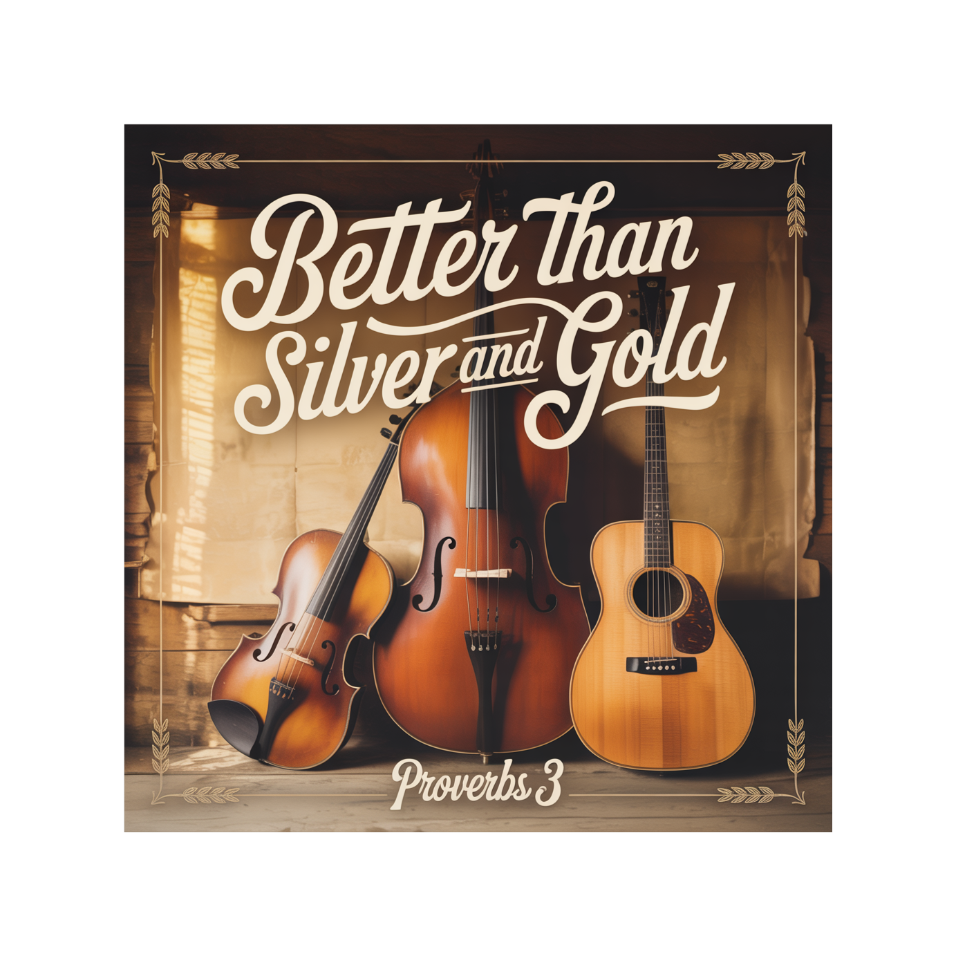 Acoustic folk–gospel trio with warm harmony vocals, Bright acoustic guitar, upright bass, hand percussion (shaker or light brush snare), and gentle fiddle fills, Tempo around 92 bpm with a gentle country swing in 3/4 or light 6/8, Organic live-room sound with soft reverb, Cheerful, down-to-earth, and heartwarming — evokes faith, simplicity, and gratitude more valuable than wealth
